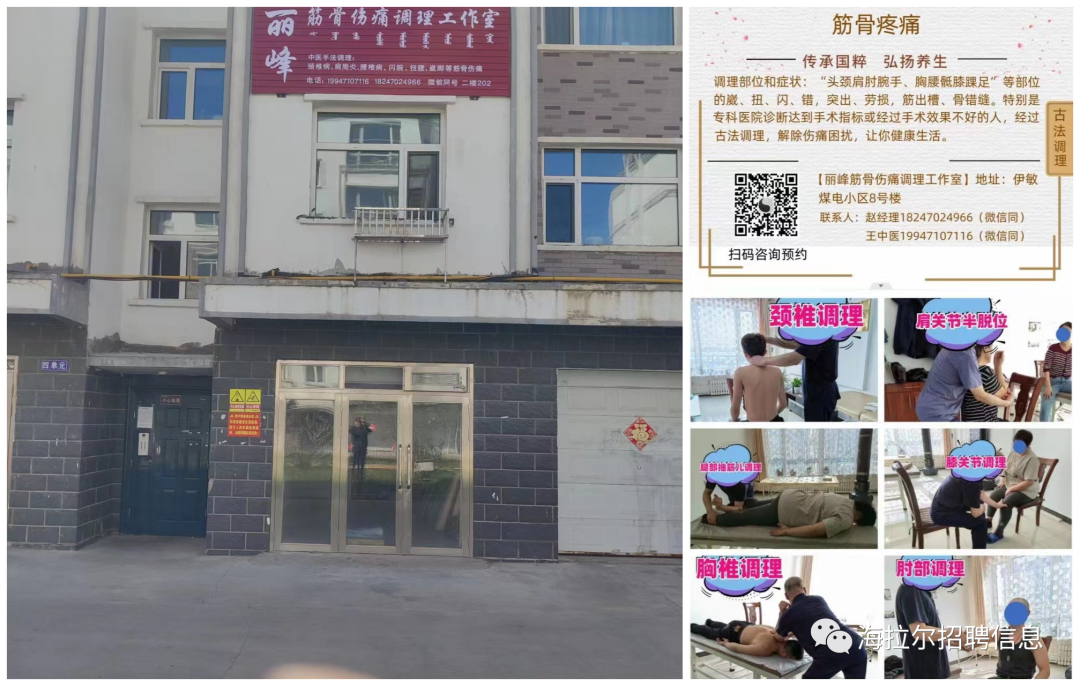 用纯中医手法调理:颈椎病、肩周炎、腰椎病,头晕、头痛、闪腕、扭腰、崴脚、腿抽筋以及青少年驼背、脊柱侧弯、坐骨神经痛、膝关节疼痛等筋骨问题。