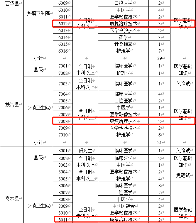 5、报考县级医疗机构的需普通全日制本科及以上学历,报考乡镇卫生院的需普通全日制大专及以上学历。