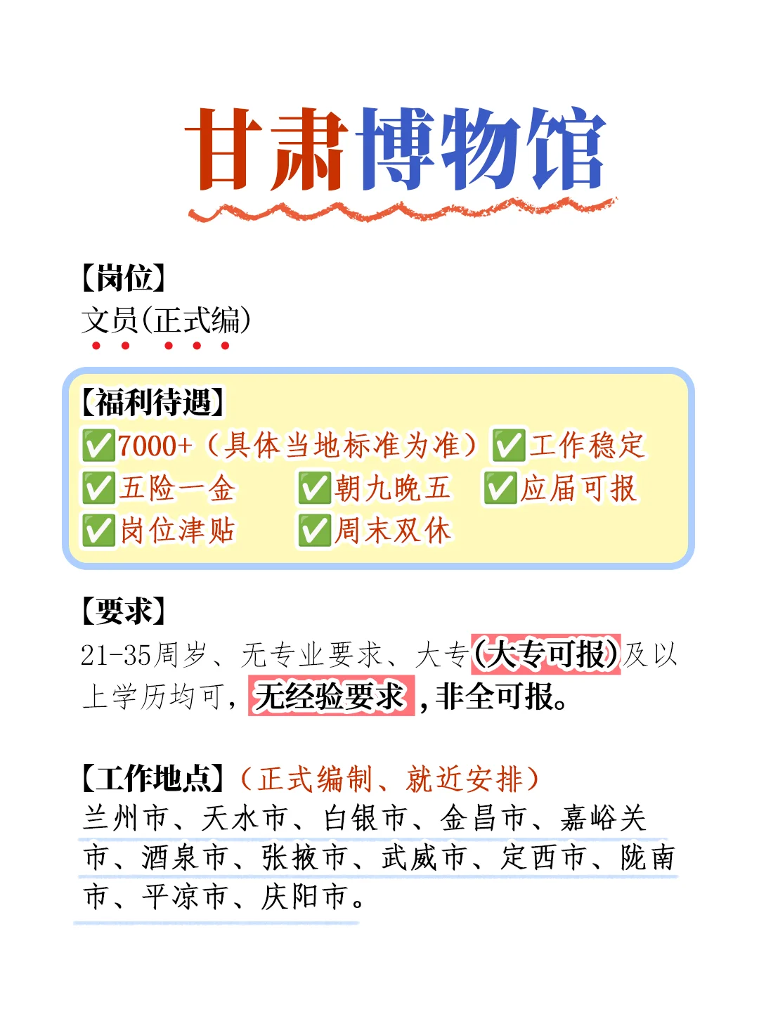 7000+(具体当地标准为准)工作稳定,五险一金,朝九晚五,应届可报,岗位津贴,周末双休