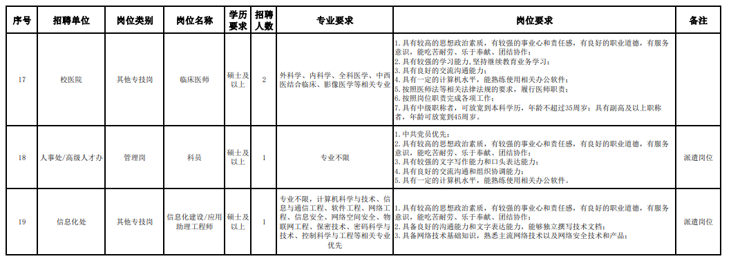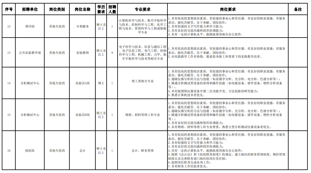 信息来源:高校人才招聘 南京航空航天大学2024年工作人员招聘公告因工作需要,南京航空航天大学明故宫校区、将军路校区招聘工作人员,有关事项公告如下: 一、招聘岗位及条件 (一)招聘岗位 招聘岗位及具体要求详见《南京航空航天大学 2024 年工作人员招聘岗位表》 (二)招条件 1.基本条件:具有中华人民共和国国籍,热爱高等教育事业遵纪守法,品行端正,无违法犯罪记录,具有良好的团队合作精神,具备正常履行岗位职责必备的身体条件和招聘岗位规定的具体资格条件。 2.学历要求:具有普通高等教育研究生学历、硕士及以上学位,博士学位优先。国(境)外毕业生学历学位需经教育部学历学位认证。第一学历应为国内外普通高等学校本科毕业。应届毕业生应于 2024 年6月 30 日前取得相应学历和学位证书 3.年龄要求:硕士毕业生一般不超过 28 周岁 (1995 年1 月1 日以后出生),特别优秀者放宽至 30周岁;博士毕业生一般不超过 32 周岁 (1991年 1月 1日以后出生),特别优秀者放宽到 35周岁,年龄计算截止至 2023年1月1日 4.部分岗位学历、年龄有特殊要求,详见《南京航空航天大学 2024 年工作人员招聘岗位表》。 二、招聘程序和办法 (-) 报名及资格审查 1.报名时间:2023年7月17日-2023年9月8日 2.报名方式:请登录南京航空航天大学人才招聘网 ( 网址:https: //zp.nuaa.edu.cn )注册后,填写申报信息、选择岗位(仅可填报一个岗位)。报名截止后,所有报名信息将不能更改3.申报要求: 请根据系统提示填写基本信息、学习经历、工作经历等,并在相应位置上传学历学位证书。未取得学历学位证书的应届毕业生需上传学信网下载的《教育部学籍在线验证报告》、毕业生双向选择就业推荐表(含照片)、成绩单( 学校盖章)等材料。个人信息及相关表格信息填写完整,个人经历须保持连续,实际内容不发生的,请注明“无”谷贤教育提醒您,更多招聘信息请关注公众号 高校人才招聘 4.资格审核:学校将结合应聘岗位具体要求对填报资料进行审核。应聘人员弄虚作假的,一经查实,即取消应聘资格。 5.有下列情形之一者,不得应聘: (1) 现役军人、普通高校在读非应届毕业生。 (2)应聘人员与学校工作人员有夫妻关系、直系血亲关系三代以内旁系血亲关系、近姻亲及其他须回避的亲属关系的,不得应聘具有直接上下级领导关系的管理岗位,以及《事业单位人事管理回避规定》要求回避的岗位。聘用单位负责人员和公开招聘工作人员与应聘人员有上述亲属关系的,或者有其他情形可能影响公开招聘公正性的,应当实行回避。 ( 3) 国家和江苏省另有规定不得应聘到事业单位有关岗位的人员。 (二)考试考核 1.学校将对应聘人员组织考试考核,包括:简历筛查、初试笔试、小组面试、综合面试。考试考核的具体形式、流程安排和时间、地点等信息将通过南京航空航天大学人才招聘网通知。 2.根据学校文件规定,应聘人员若与本校在职或离退休教职工有夫妻关系、直系血亲关系、三代以内旁系血亲关系的,需报校长办公会审批,每年不超过 2 个名额。此次招聘综合面试分若干组进行,每组最多推荐 2名与本校教职工有亲属关系人员,所有被推荐人按综合面试成绩百分比排序,百分比计算办法: ( 综合面试成绩-本组拟录岗位数人员平均成绩 )/本组拟录岗位数人员平均成绩,按百分比从高到低确定拟录人员,若百分比出现并列,按笔试成绩高者优先的原则确定人选。 (三) 体检 考试考核结束后,按招聘岗位和拟招聘人数 1:1 的比例从高分到低分确定参加体检人员。因体检不合格等原因出现招聘岗位空缺时,在考核合格人员中,根据学校综合面试成绩从高到低进行递补。 (四)校长办公会审议 考试考核、体检通过者提请校长办公会审议,讨论决定拟聘用人员名单 (五)公示与聘用 拟聘人员在人事处网站进行公示。对公示无异议人员,将办理聘用手续,签订合同,并约定试用期。拟聘用人员按非事业编制人事代理方式聘用(附件表格中标注岗位除外 ) 三、注意事项 1.应聘人员应及时关注学校人才招聘网相关公告及人才招聘系统站内信相关通知,并在规定的时间和地点参加考试考核否则视为主动放弃 2.应聘人员须准确填写电子邮箱及移动电话,因联系方式填写错误而导致一切后果由应聘者本人承担, 四、招聘咨询 人事处联系人:李老师电话:025-84896867 学生工作处 联系人:杨老师 电话:025-52117808 2023年7月17日 ▼点击阅读原文并获取附件 监制:李凤 责任编辑:韩雷 信息来源:高校人才招聘 执行编辑:史俊婷 审核:夏百贺 |