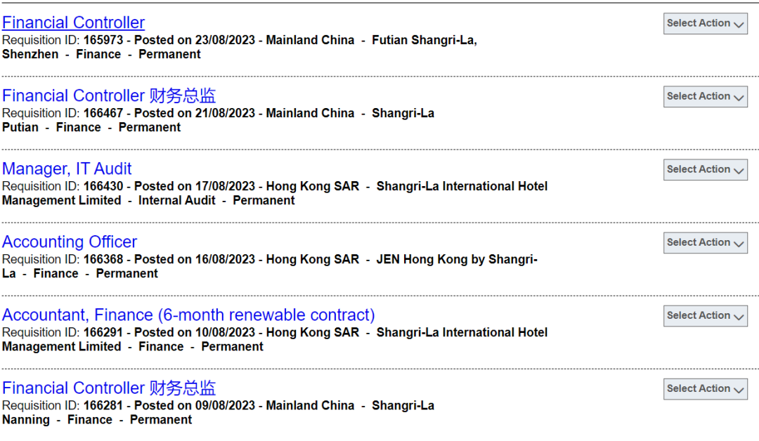 Shangri-La招聘财务总监/IT Audit/financial controller等,base香港/深圳/南宁。