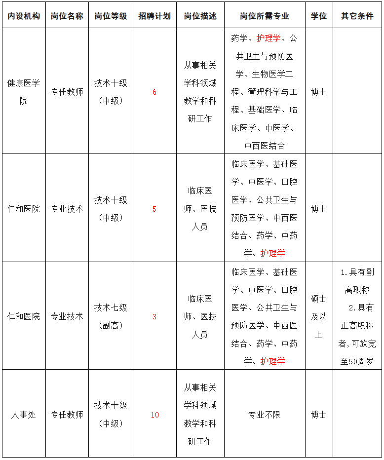 6. 具备岗位所需的其他条件(具体条件详见岗位计划表)。