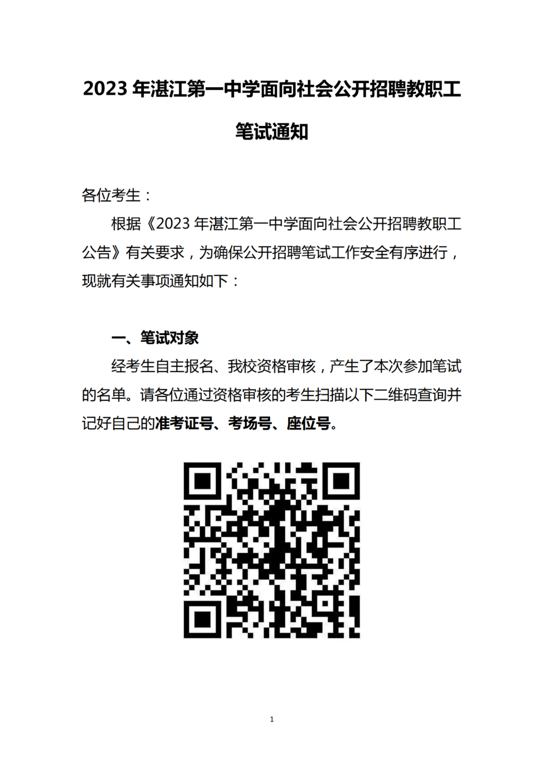 8月24日笔试!湛江第一中学招聘教职工笔试通知