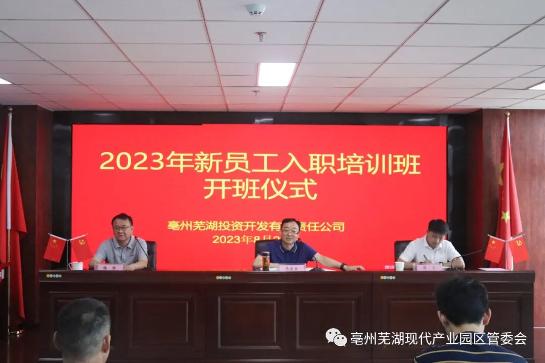 为落实“‘亳’揽英才 智汇药都”亳州市2023年“招才引智高校行”活动,深入实施新时代人才强市战略,按照亳芜园区党工委统一安排部署,经过规定程序,来自武汉理工大学、合肥工业大学、安徽大学等高校的17名全日制研究生被录用到亳芜投资公司工作,人员已经全部到岗,培训近期全面启动。8月23日上午,亳芜投资公司举行了新入职员工培训班开班仪式。亳芜园区党工委书记、管委会主任汤德余出席并致辞。