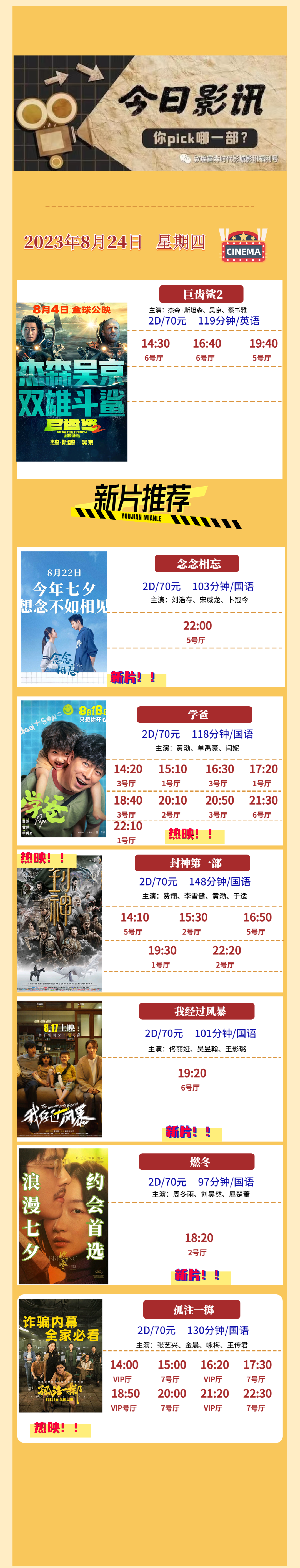 1、每位家长可带一位1.2米以下儿童观影,小孩无需购票(网络已购票,前台一律不退不补)。