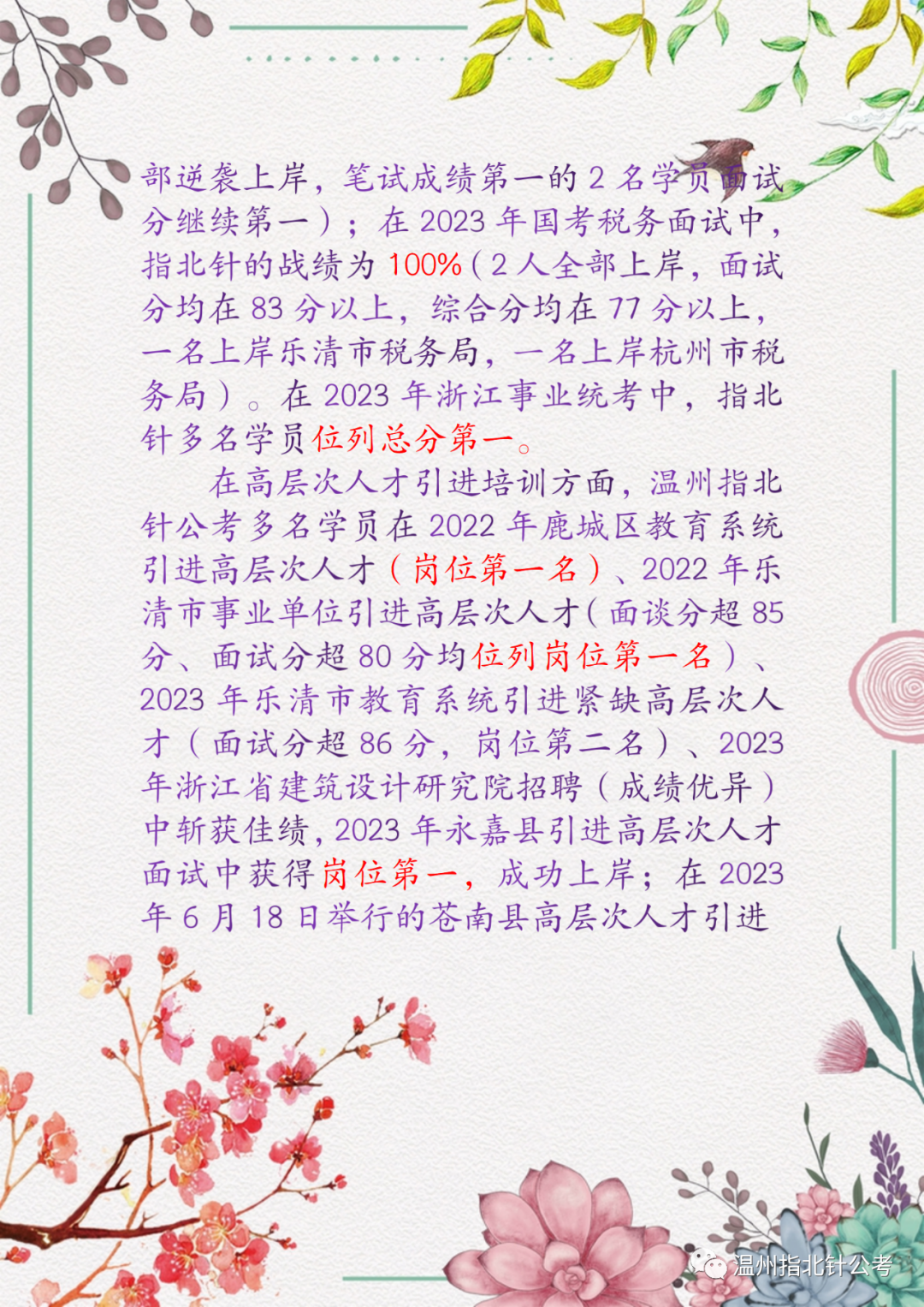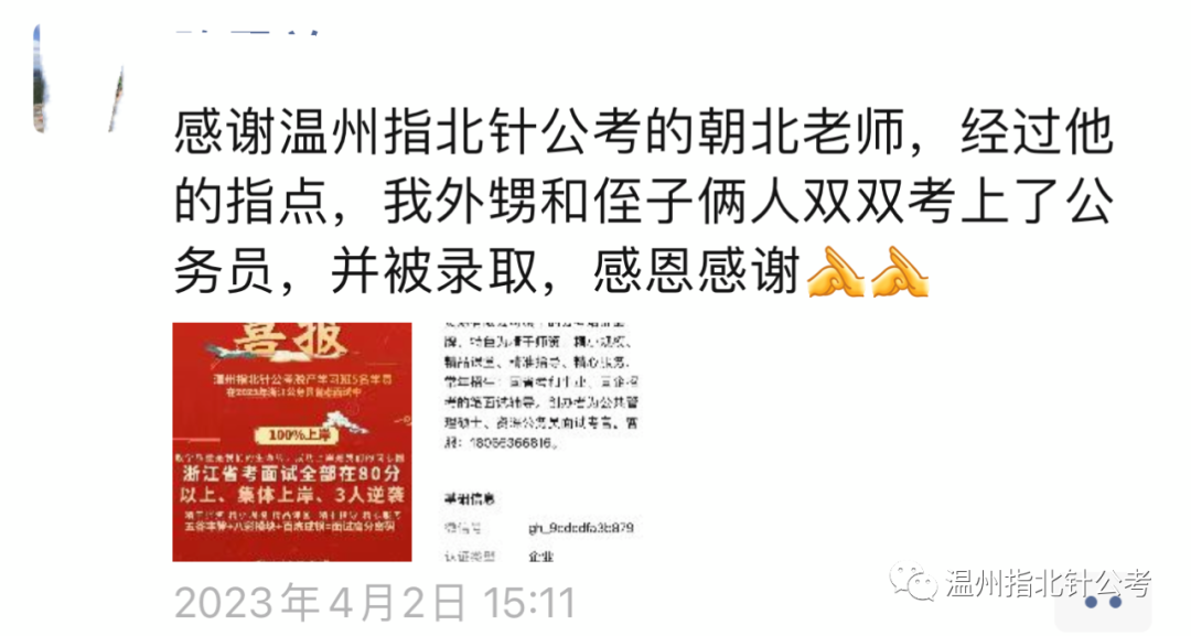 到温州指北针公考学习培训的小伙伴对我们的师资水平、教学质量都是有口皆碑!欢迎各位家长与小伙伴垂询报名:18066366816(微信同号 )