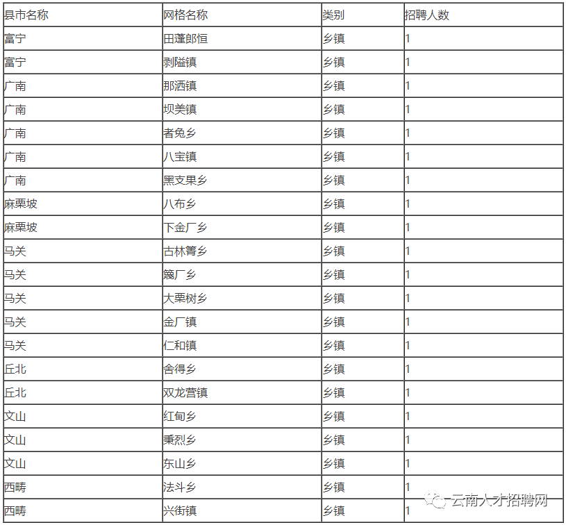 (一)招聘人数:委托乡镇服务中心承包商在文山州范围内招聘21名乡镇机构负责人,招聘范围如下: