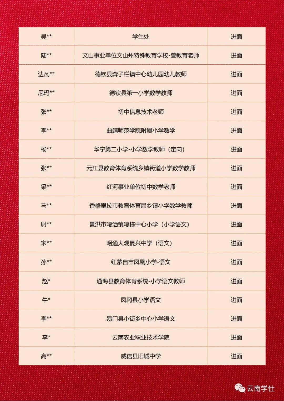 教师招聘坚持“德才兼备、人岗相适”的用人标准,遵循公开、平等、竞争、择优的原则,坚持信息、过程、结果“三公开”。昌宁县湾甸傣族乡中心学校2023至2024学年计划招聘幼儿园编外教师50名。(一)具有中华人民共和国国籍,政治合格、品学兼优,未受过任何党政纪处分,体检合格,综合素质良好。