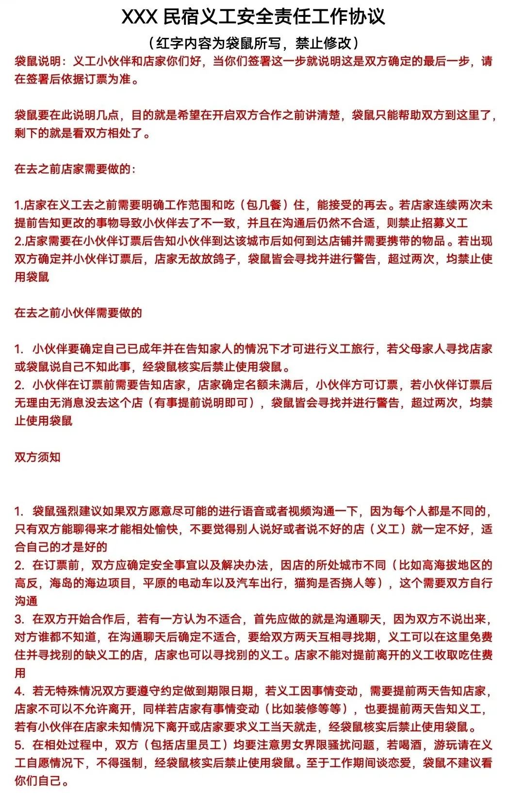 1.袋鼠从开始到现在以及未来,都不会收取义工和店家的钱和任何东西,一是因为袋鼠希望这里是纯粹的,二也不想受任何约束,做袋鼠想做的,你们双方相处愉快就好了