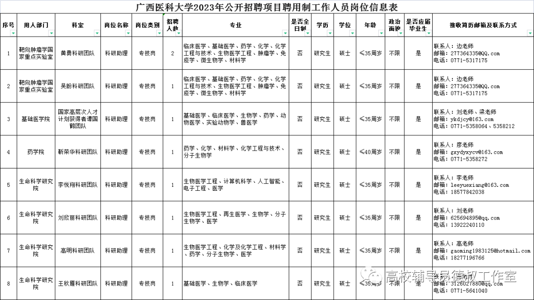 招聘联系人及联系方式:刘老师、梁老师,0771-5358979。