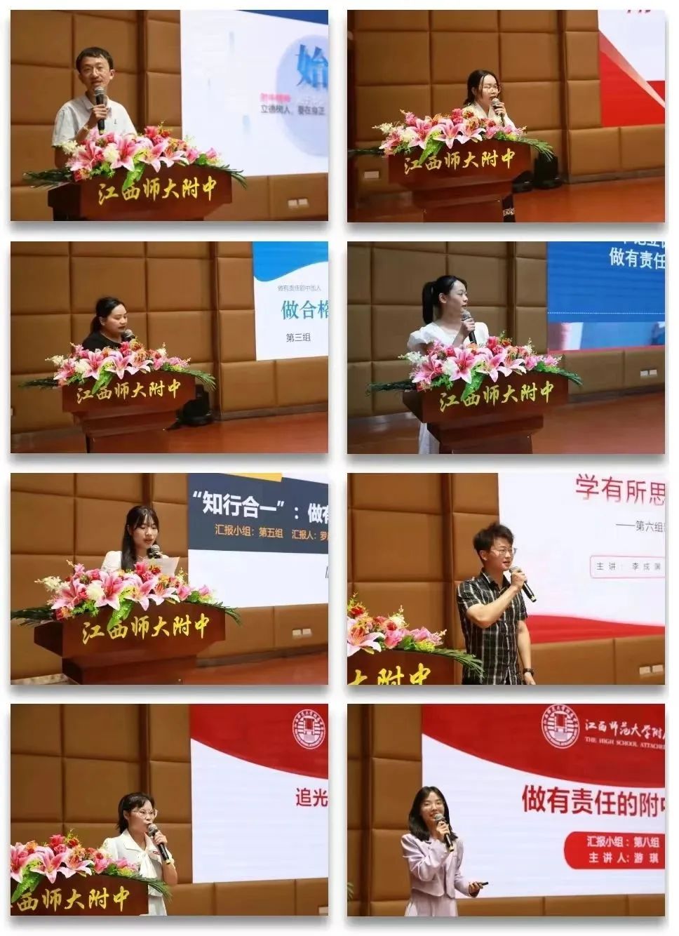 根据科教处安排,本次培训共分为8个小组,开展了三次小组讨论活动。在组长的组织下,各小组围绕讲座内容,结合集团工作、校区工作和个人工作畅谈体会,并选定专人于21日下午的结业仪式上进行汇报。各组的汇报凝练本组共识,内容丰富,思想深刻,彰显了我校新进青年教师杰出的专业素养和良好精神风貌。
