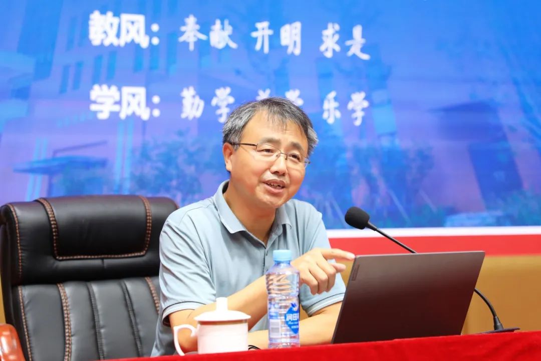 全国模范教师、评测中心副主任徐跃平以《追寻远方 拔节成长——漫谈教师的专业发展路径》为题,结合自身经历向新进老师指明了教师的专业成长路径。他表示,课堂教学是专业发展的落脚点,必须寻找支点,深耕课堂,继而往深处扎根,喷薄力量,同时笔耕不辍,凝练主张,最终方能积蓄光芒,浇灌成长。