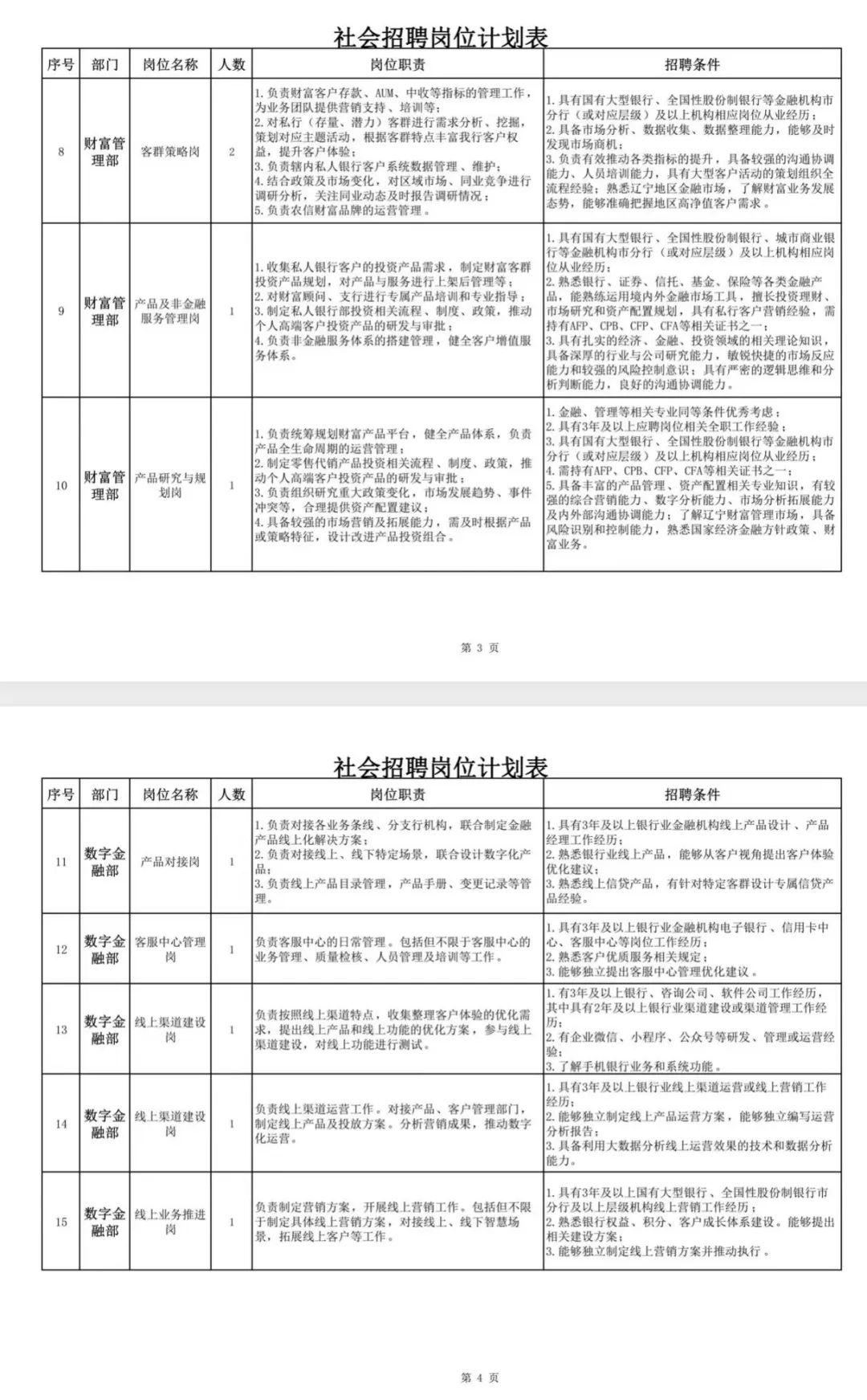 面向社会招聘省级农商行总行部门员工(不含辽宁农信系统在编在岗人员)2