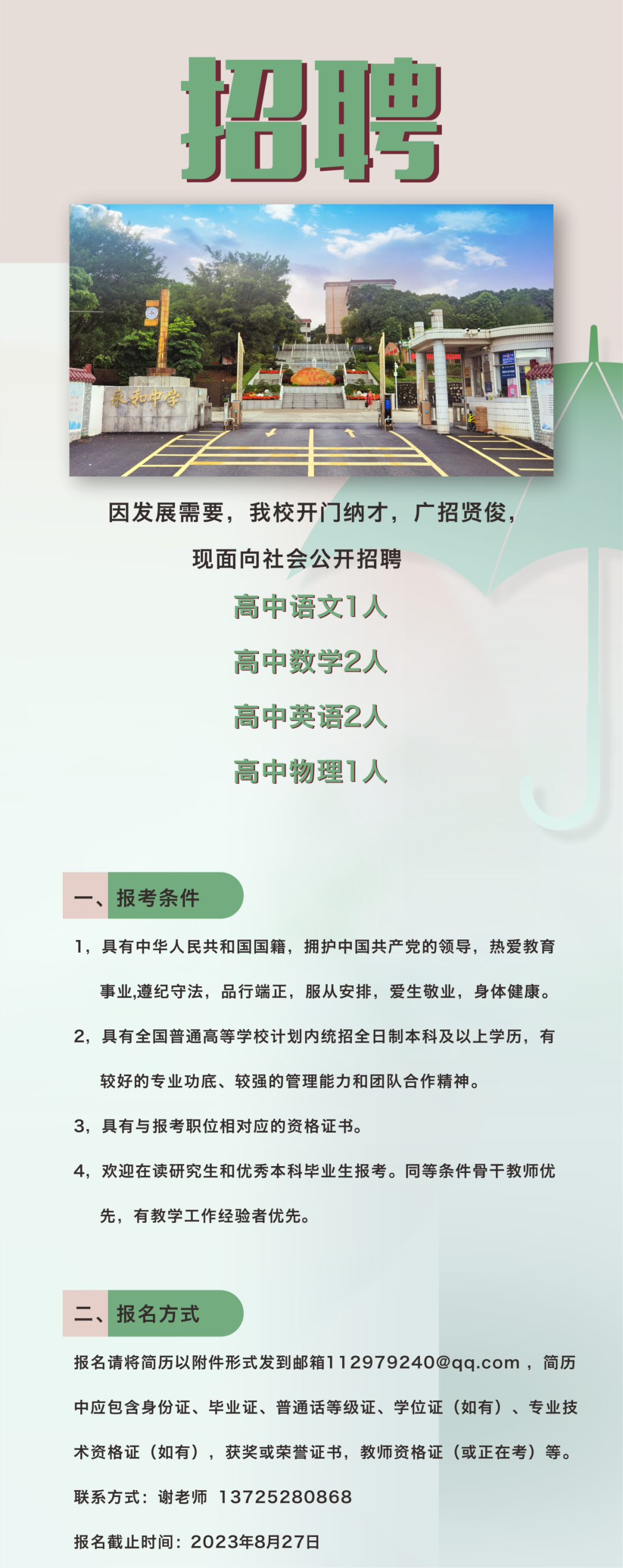 语文教师1名,聘期为2023年9 月1日至2024年7月31日。