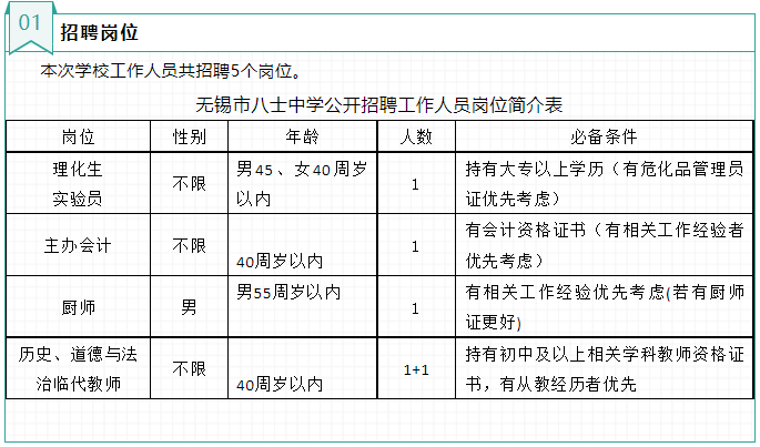 根据学校工作需要,无锡市八士中学面向社会公开招聘工作人员,现将有关事宜公告如下:
