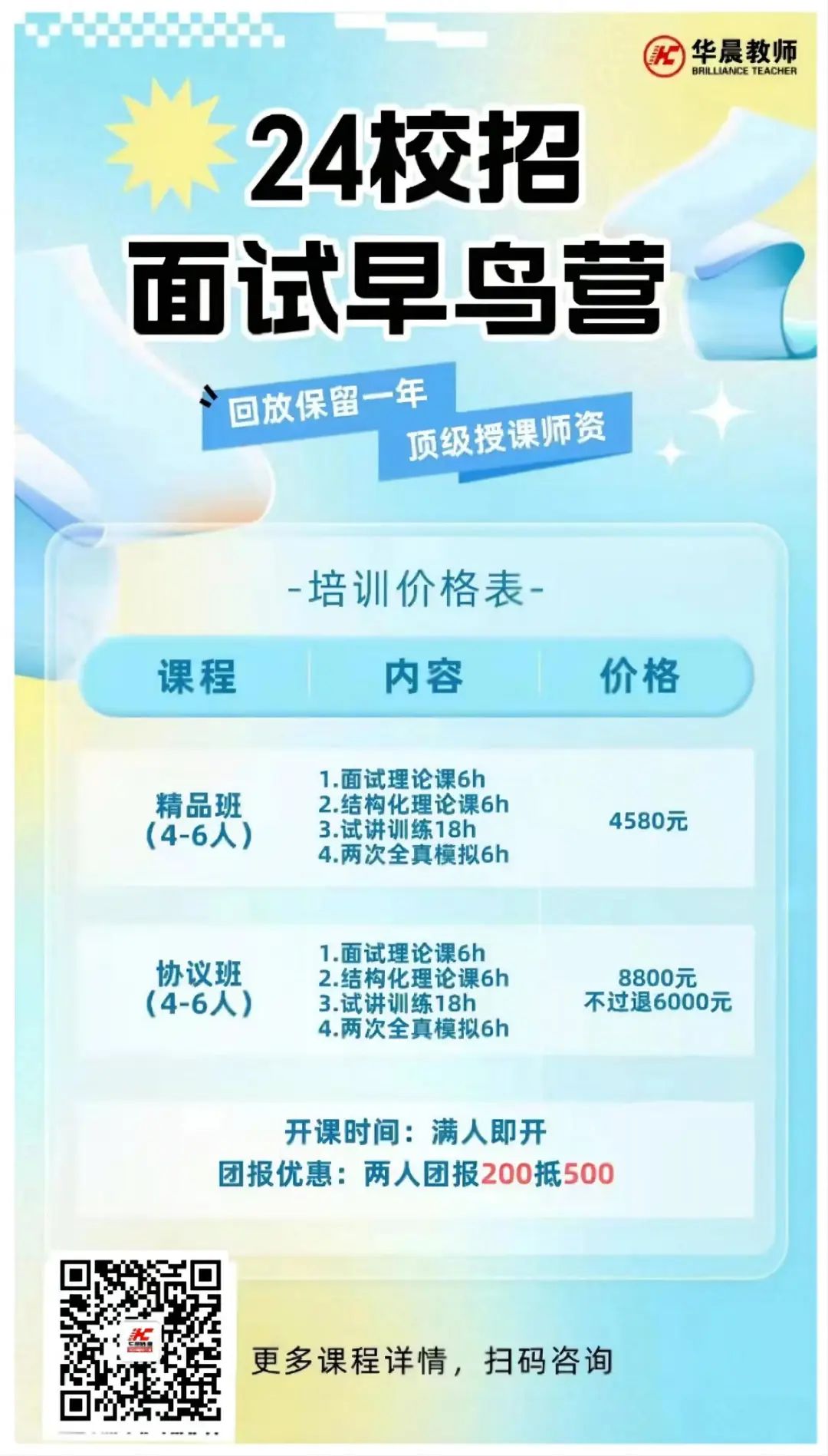福利:全年笔试其他小课免费送、面试班可跟上2期