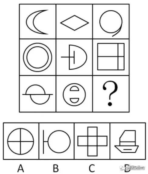 【例题】从所给的四个选项中,选择最合适的一项填入问号处,使之呈现一定的规律性: