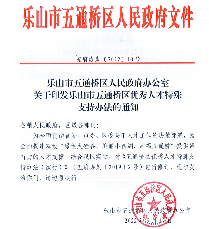 聚焦贯彻落实《“中国绿色硅谷”人才集聚十条硬措施》,修订出台《五通桥区优秀人才特殊支持办法》,将人才经费列入区级财政预算,兑现高层次人才奖励500余万。发放购房补贴1421万元,补贴优秀教师购房面积9400余平方米。