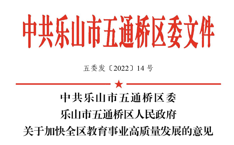 制发《加快全区教育事业高质量发展的意见》,每年区财政预算1000万元用于全区教育教学发展和激励。制发《五通桥区教育人才培养和管理实施办法》,实施教育人才梯级培养管理,建立名师(名校长)工作室12个。与市人民医院、市中医医院建立医联体,通过上派进修规培和下沉临床培训带教等方式,提升专业技术人员能力水平。