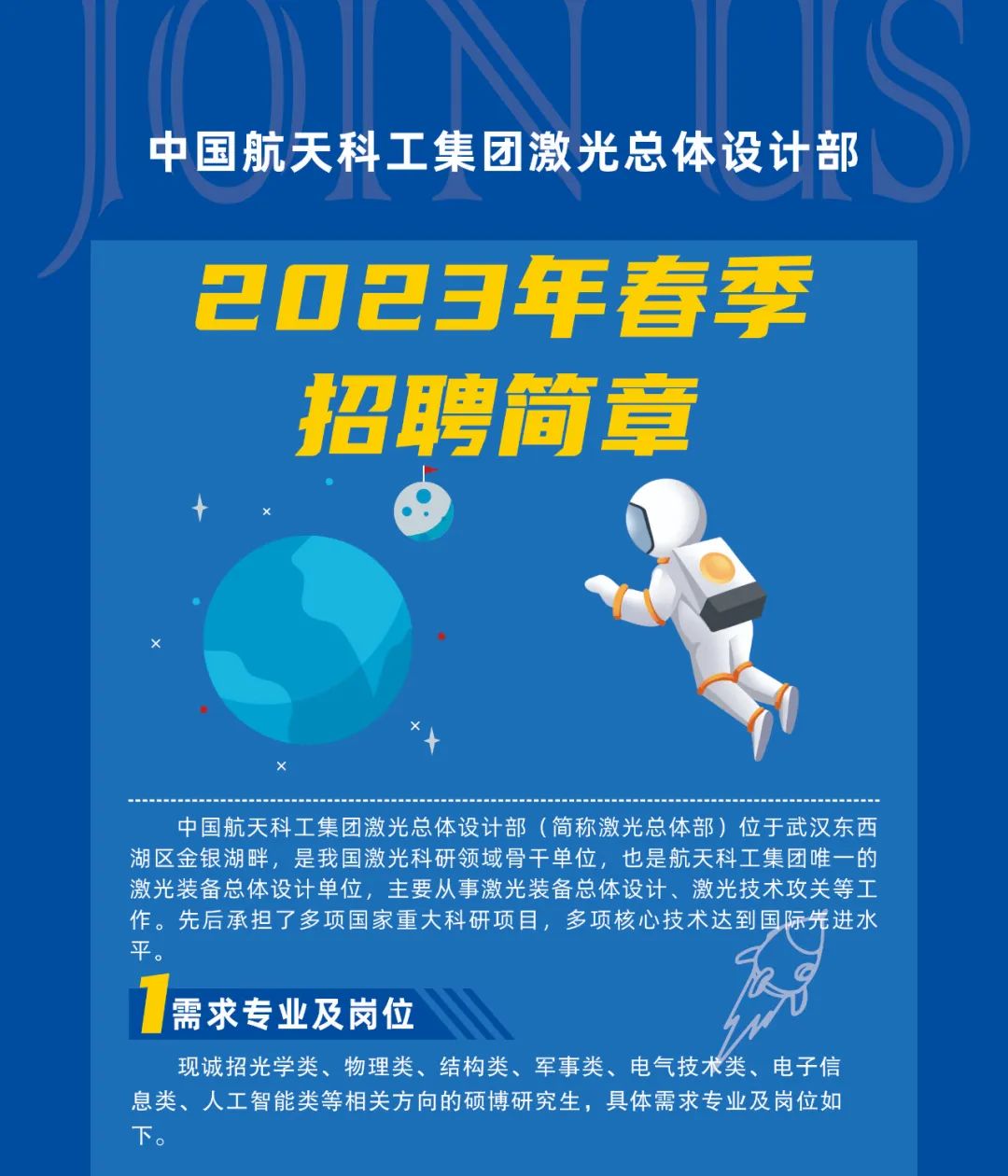 校园招聘 | 虚位以待!中国航天科工集团激光总体设计部2023年春季招聘正式启动