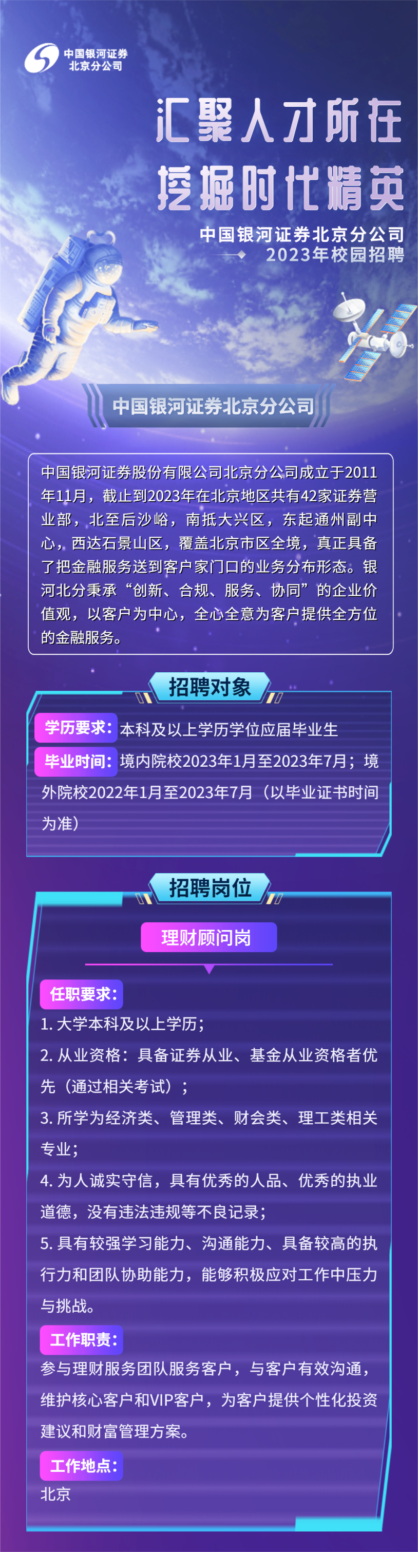 【校园招聘】中国银河证券北京分公司2023届校园招聘