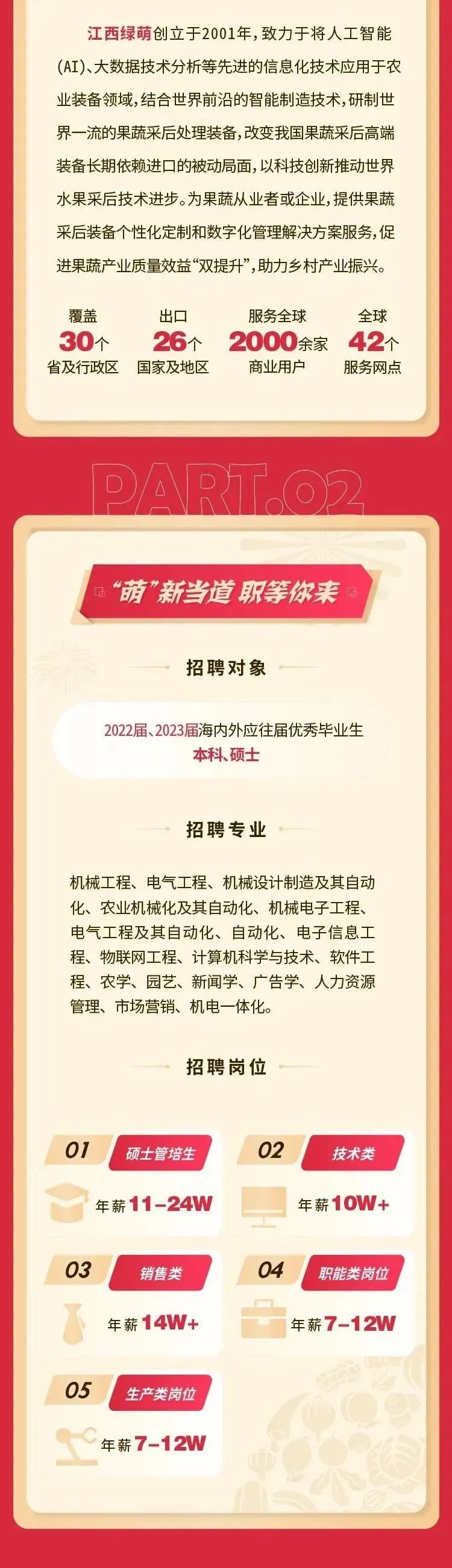 >【校园招聘】江西绿萌2023届校园招聘正式开始
