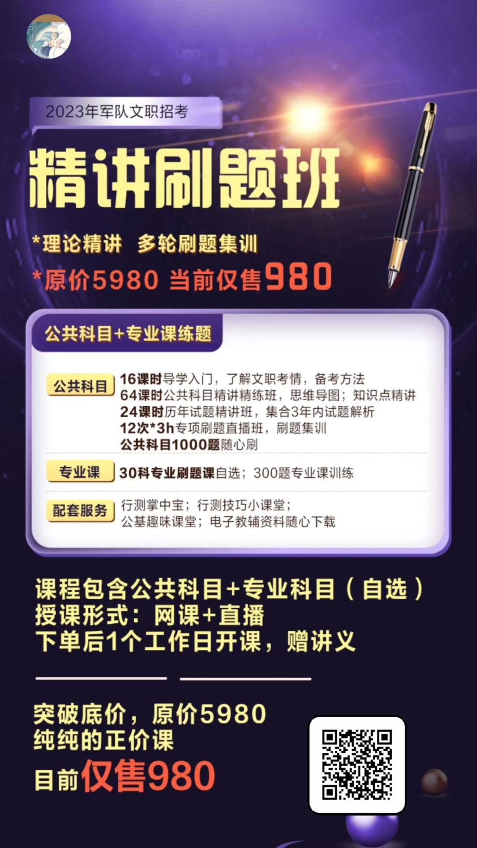 ⑤军队文职笔试系统班(低价回馈)