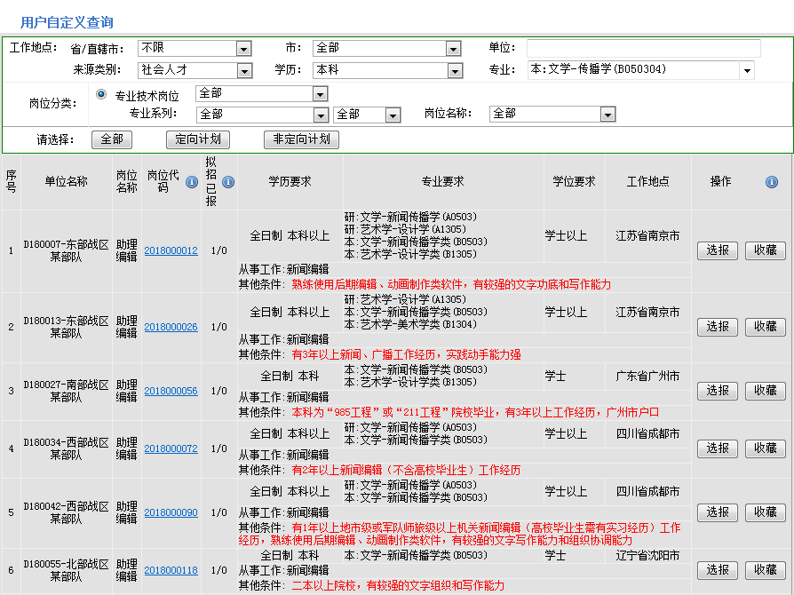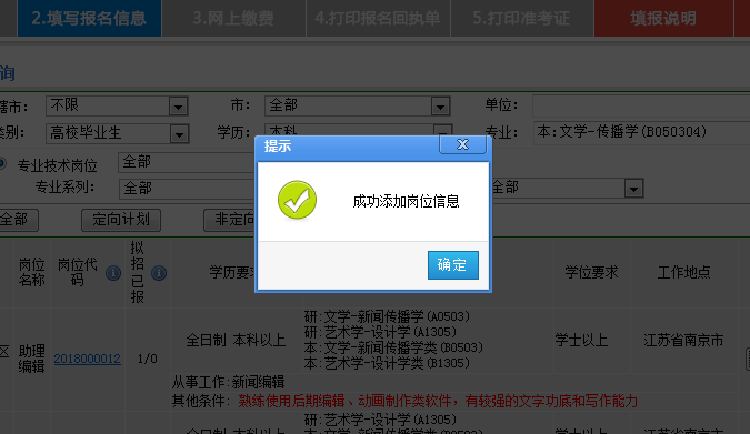 岗位选报过程分为“岗位查询”和“岗位报考”两步: