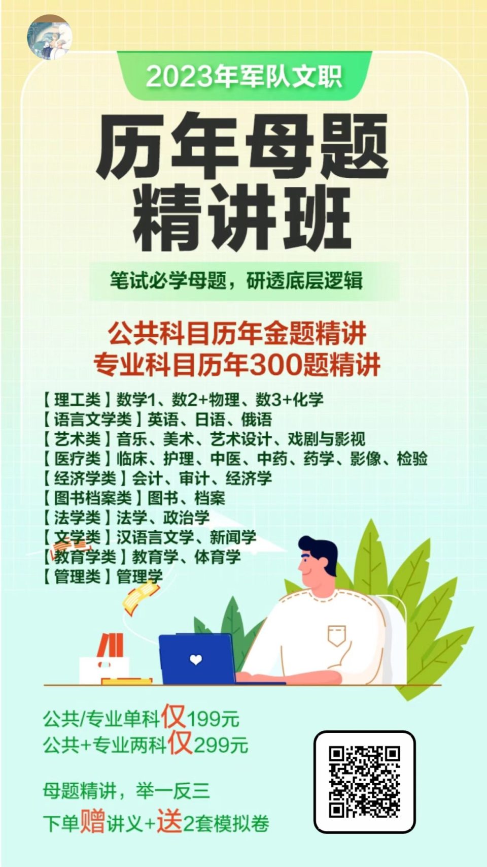 扫码添加客服后,回复“军队文职”了解课程领取备考课件