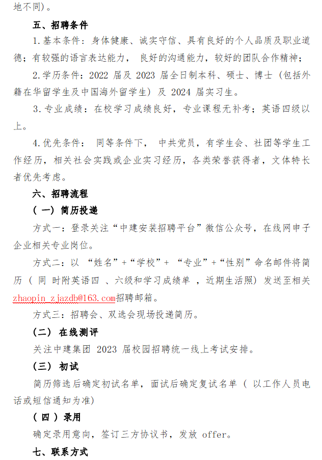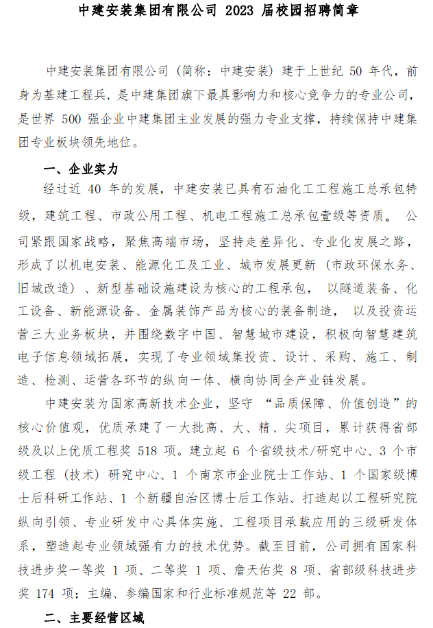 >中建安装集团有限公司2023届校园招聘简章(东北)
