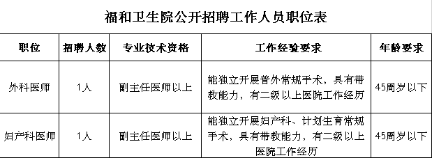为满足我院卫生健康事业发展需要,特面向社会公开诚聘两名副主任医师,现就有关事项公告如下: