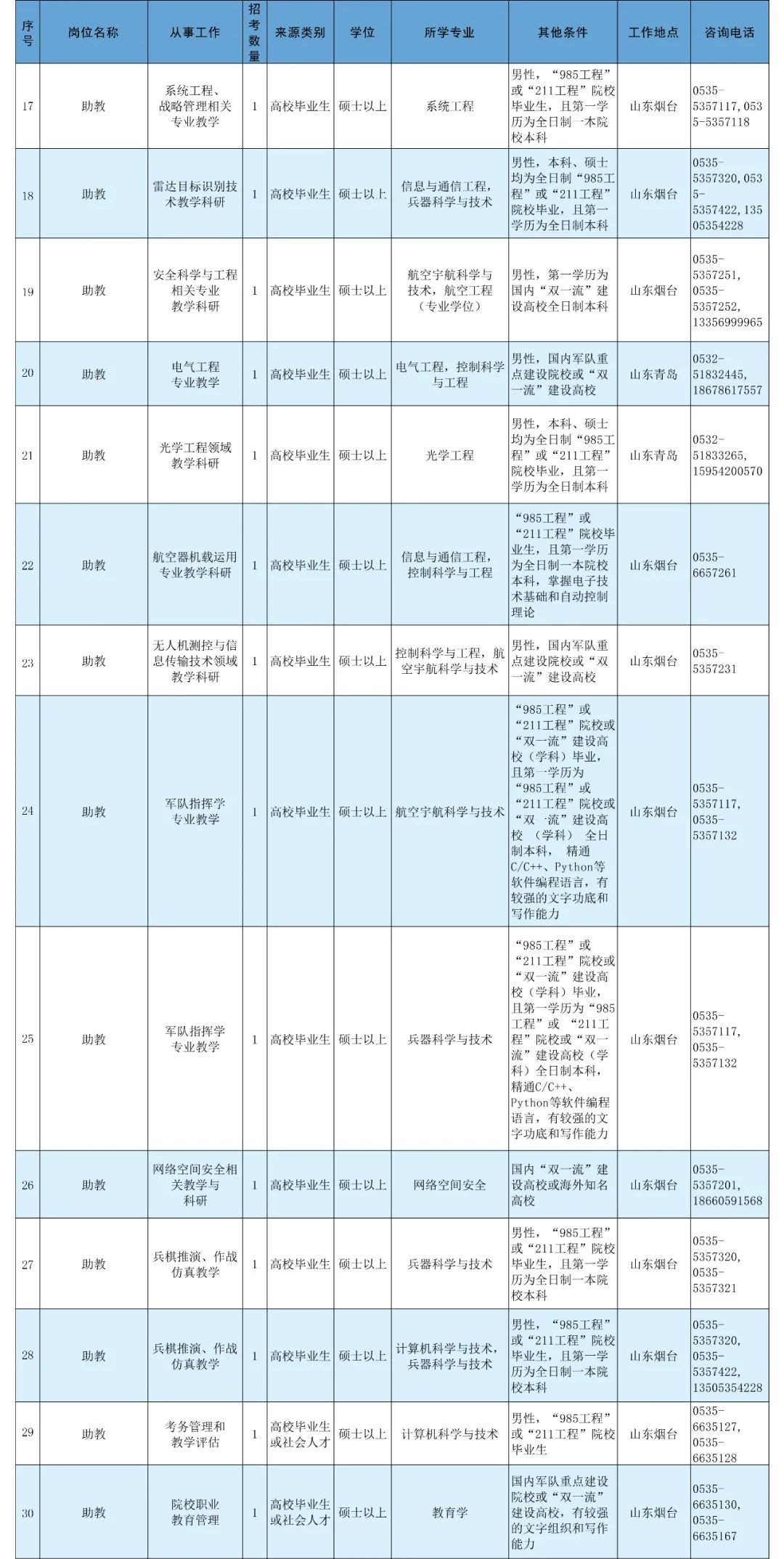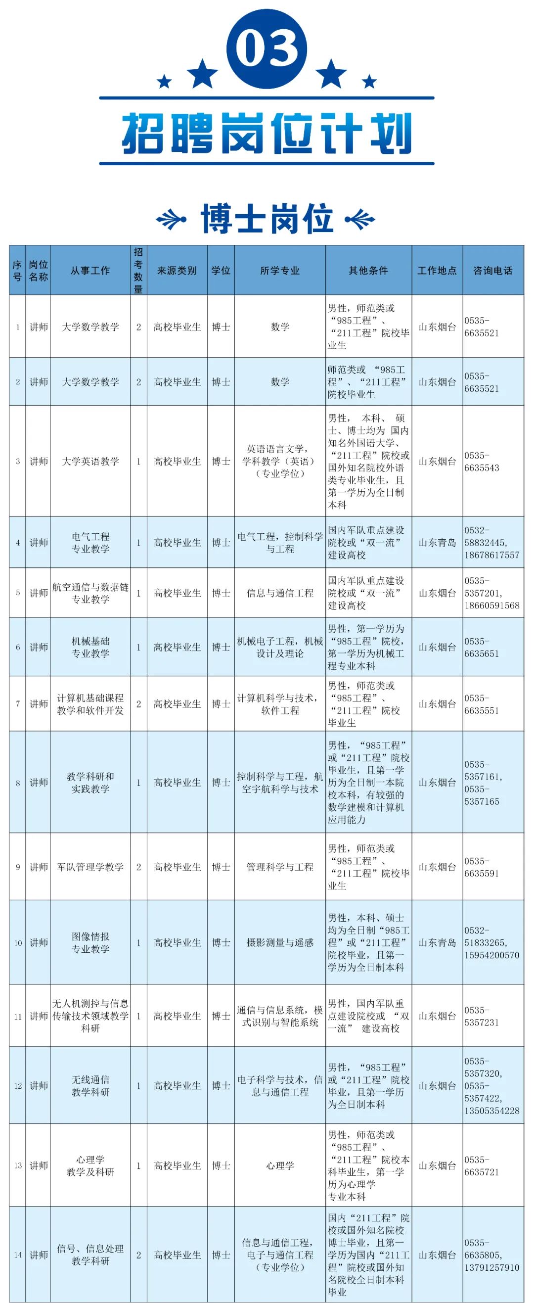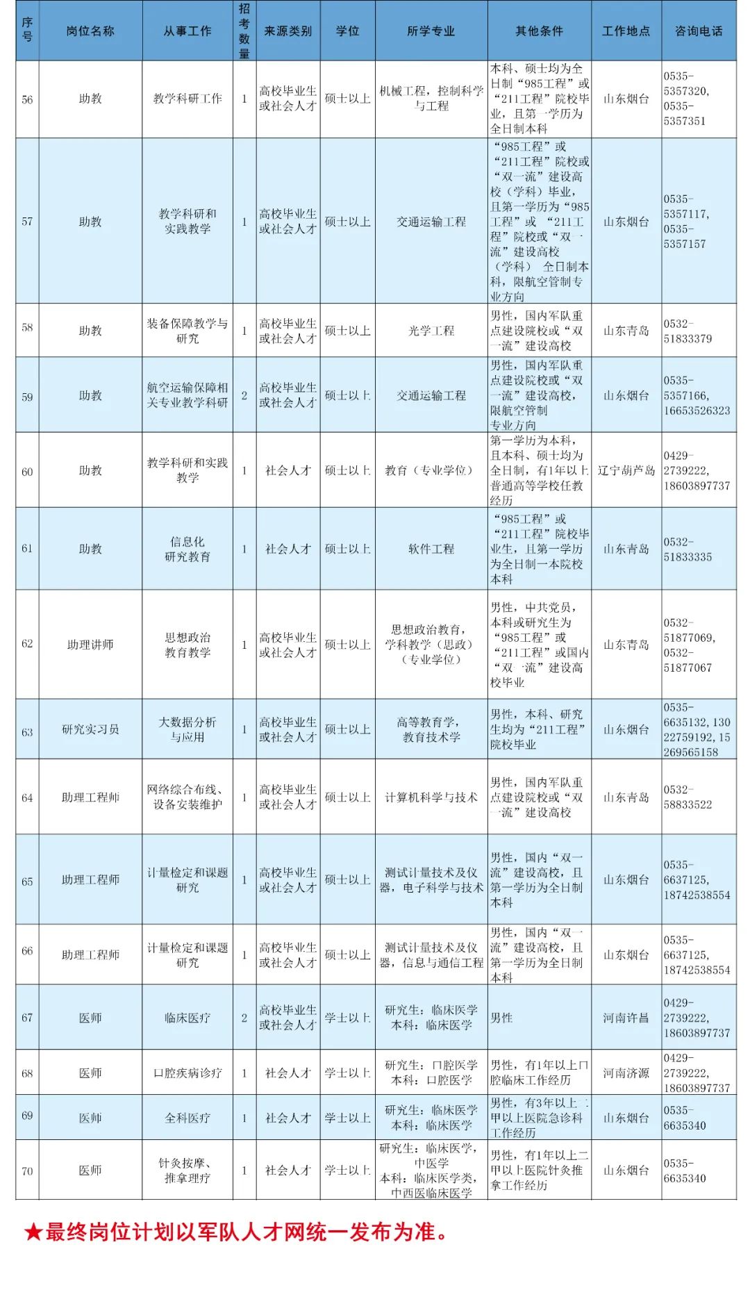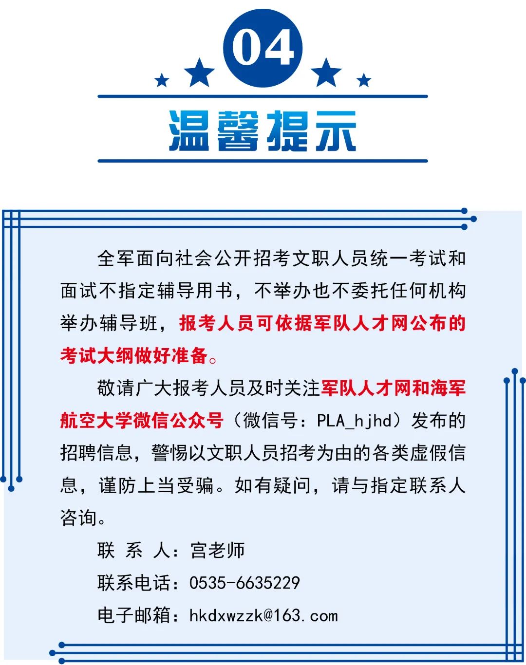 全军2023年面向社会公开招考文职人员岗位计划已经在军队人才网(http://www.81rc.mil.cn)正式发布,报名时间为1月13日8:00至17日18:00,现将海军航空大学2023年面向社会公开招考文职人员工作公告如下。