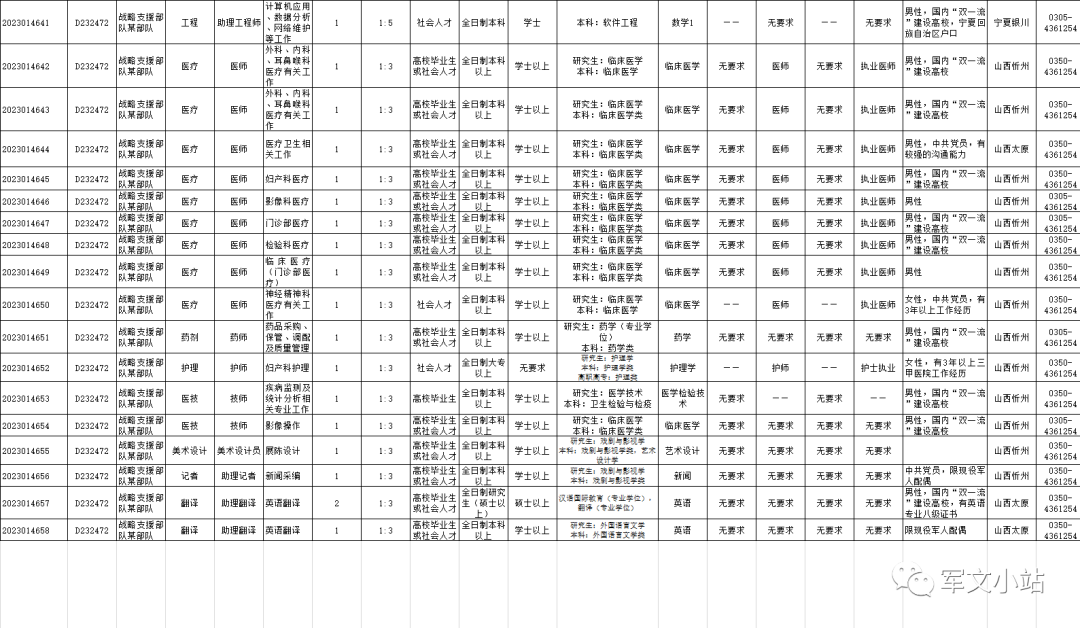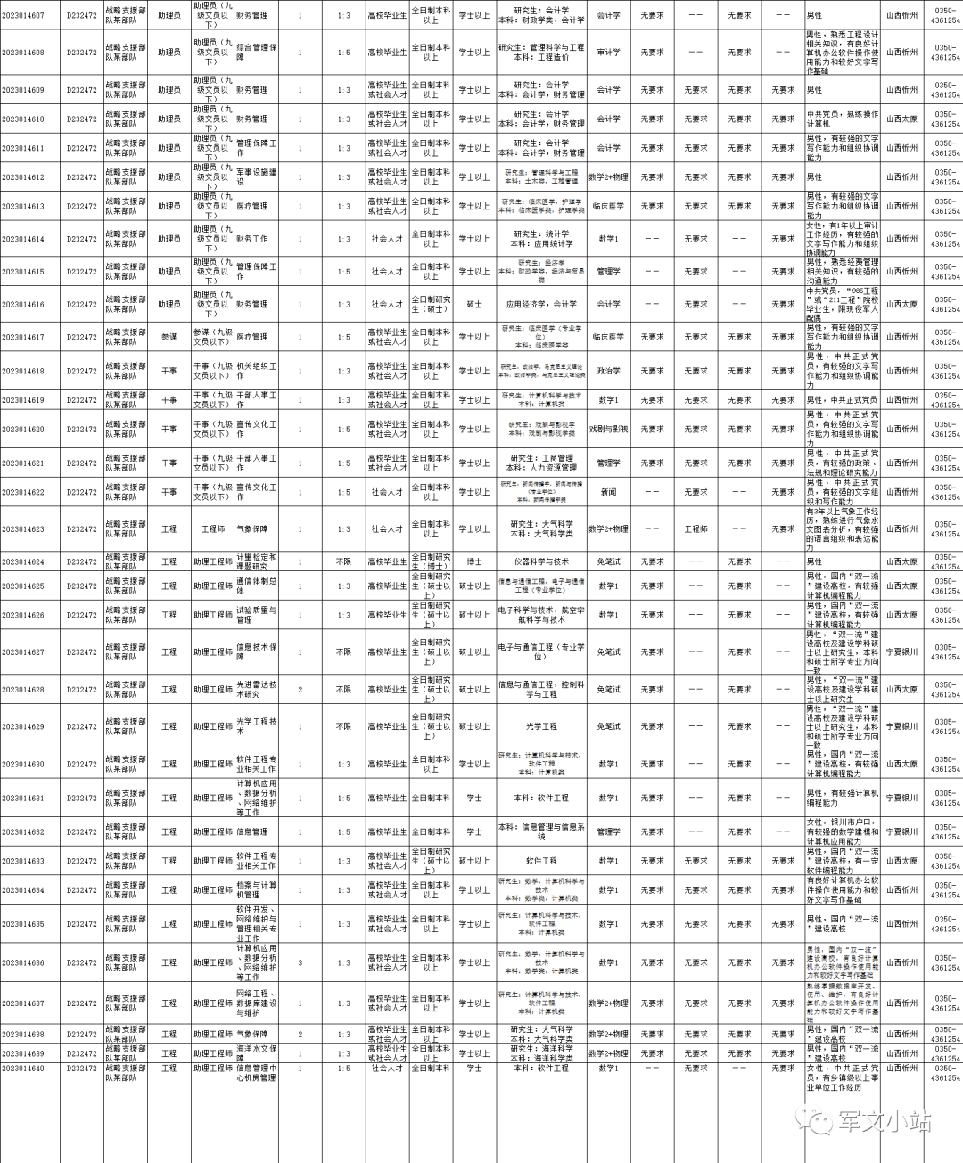 战略支援D2324732部队面向社会公开招考文职人员