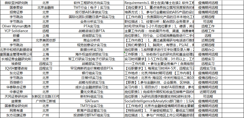 完全免费服务!远程实习精选后的岗位。