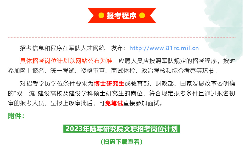 >【国聘行动】陆军研究院2023年文职招聘公告