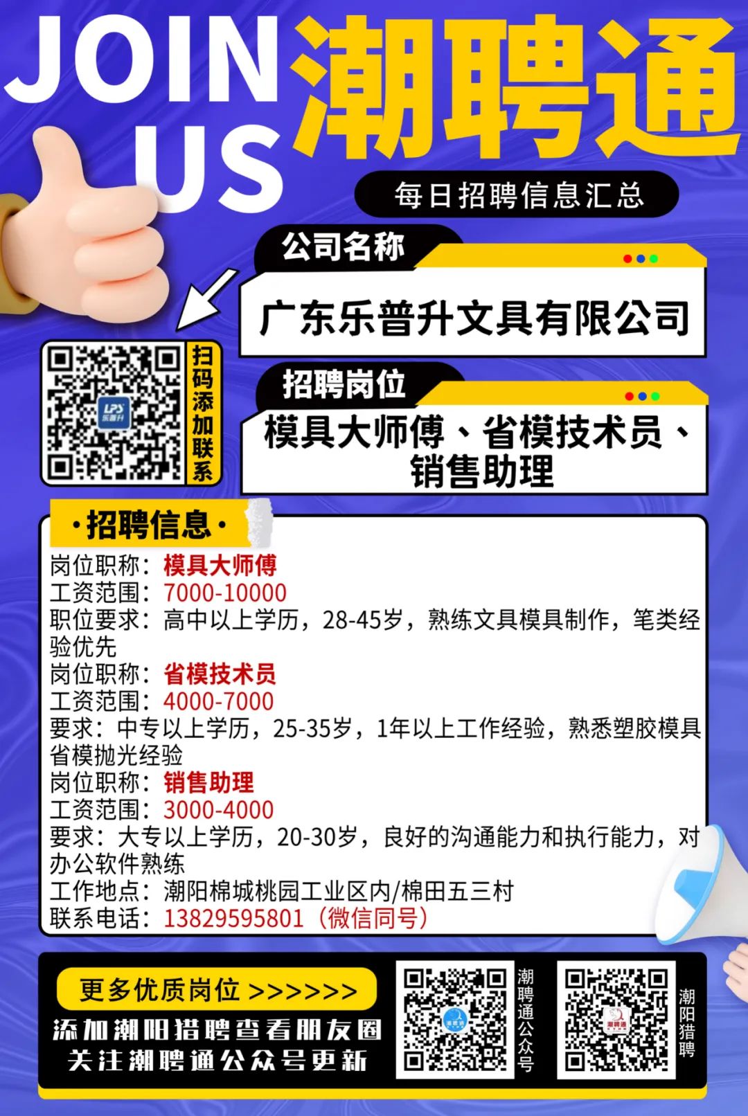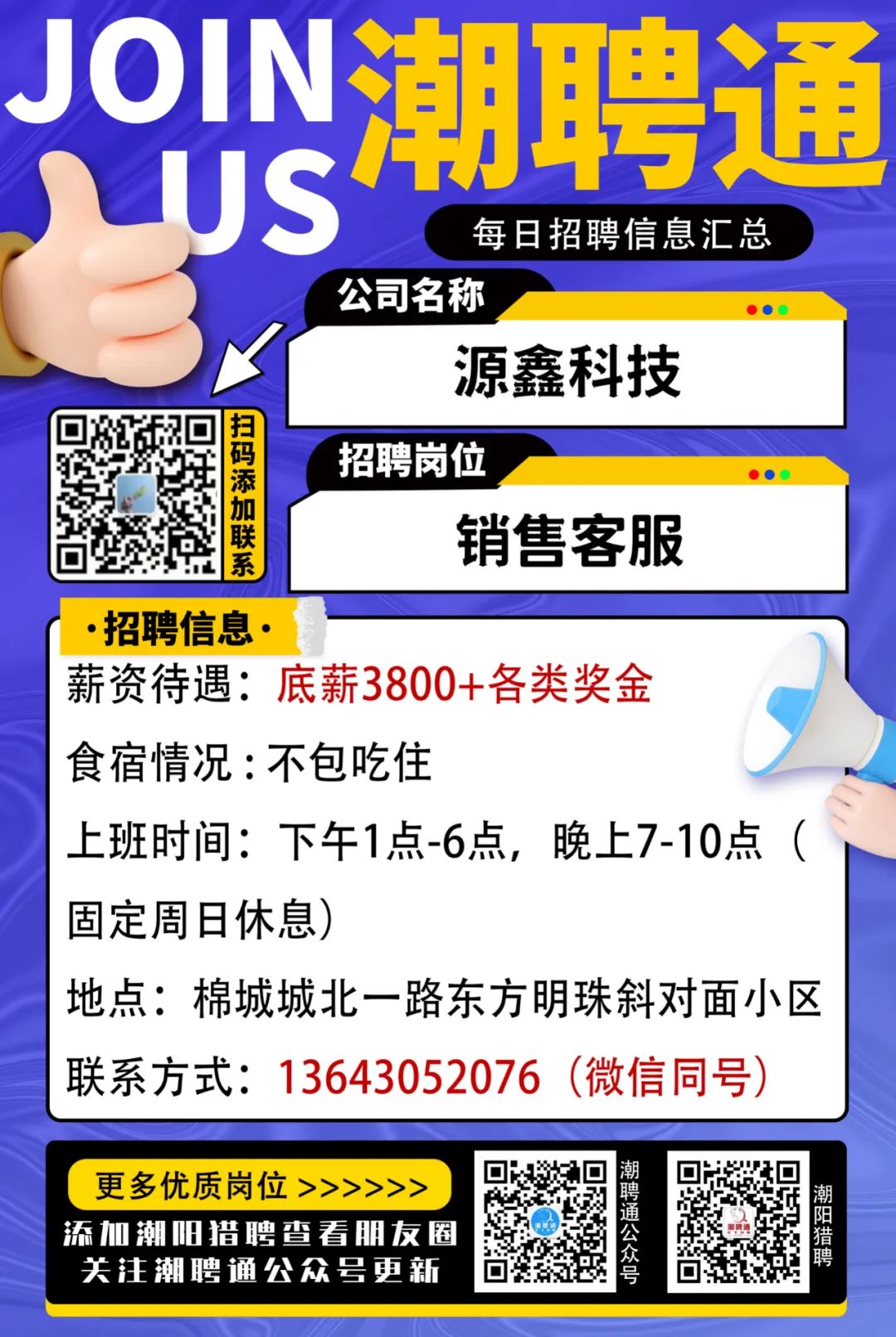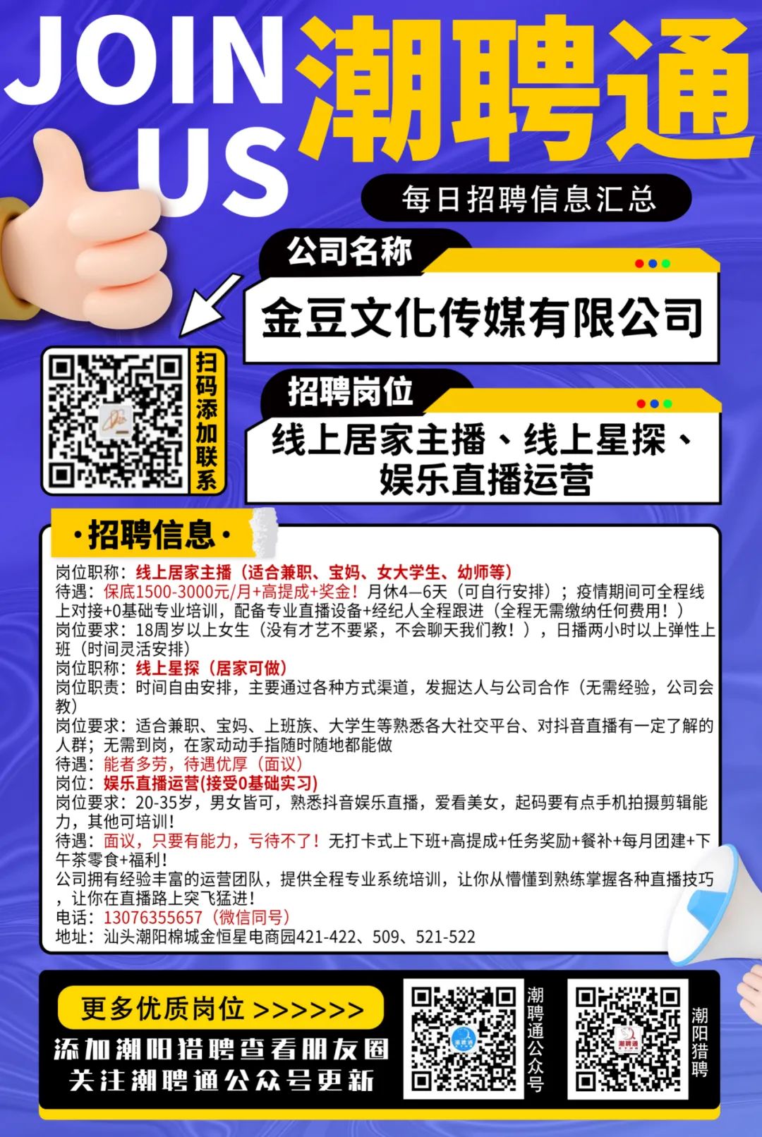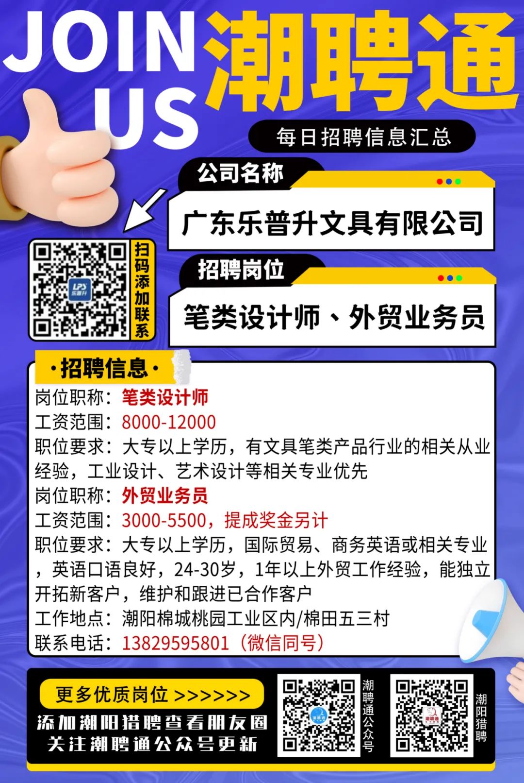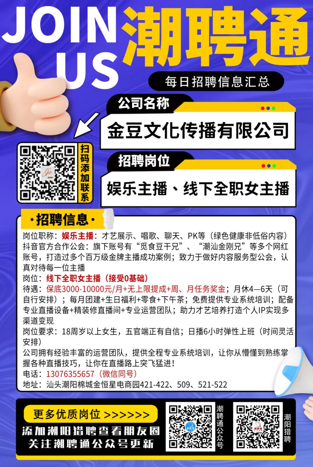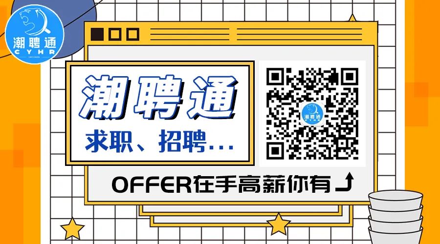 更多招聘信息请扫码添加潮聘通微信号查看朋友圈实时更新!