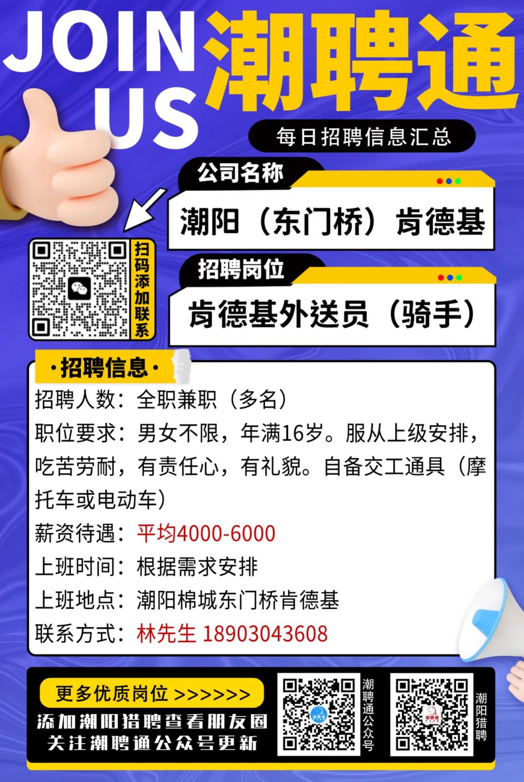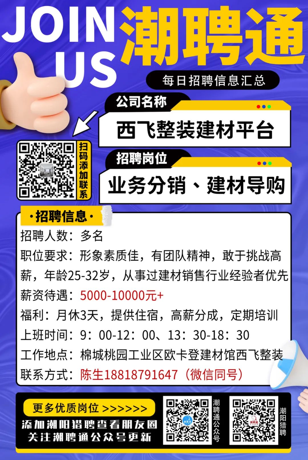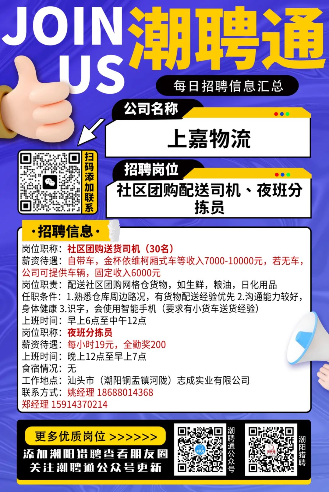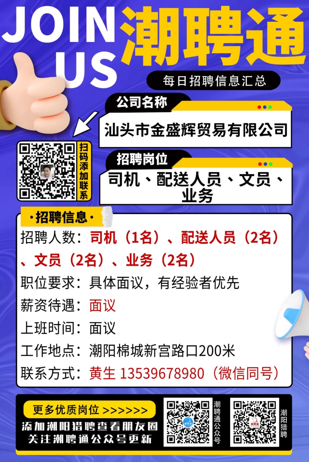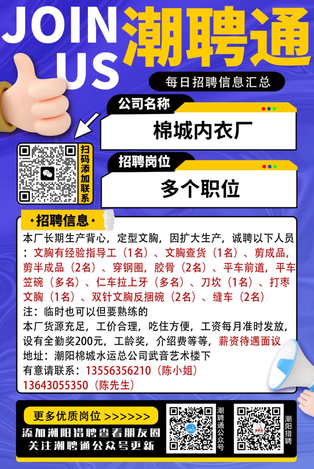 更多招聘信息请扫码添加潮聘通微信号查看朋友圈实时更新!