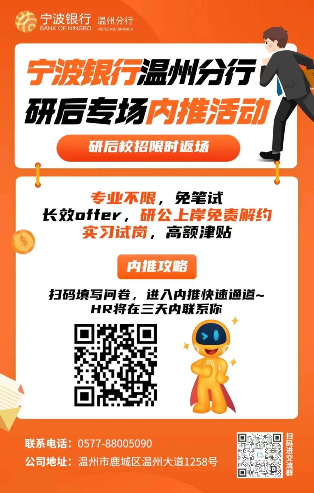 『上市公司—宁波银行温州分行2023校园招聘,研后限时返场』