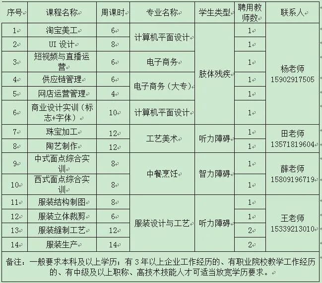 陕西省城市经济学校是一所以残疾人职业学历教育和技能培训为主的全日制公办省级重点中等职业学校,隶属于陕西省残疾人联合会,学校位于西安市朱宏路9号。根据学校教学工作需要,2023年春季学期需聘请相关专业课兼职教师若干名。现就有关事项公告如下: 一、招聘岗位