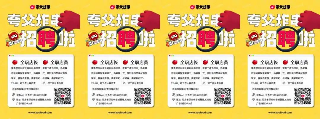 :容城县夸父炸串招聘以下岗位