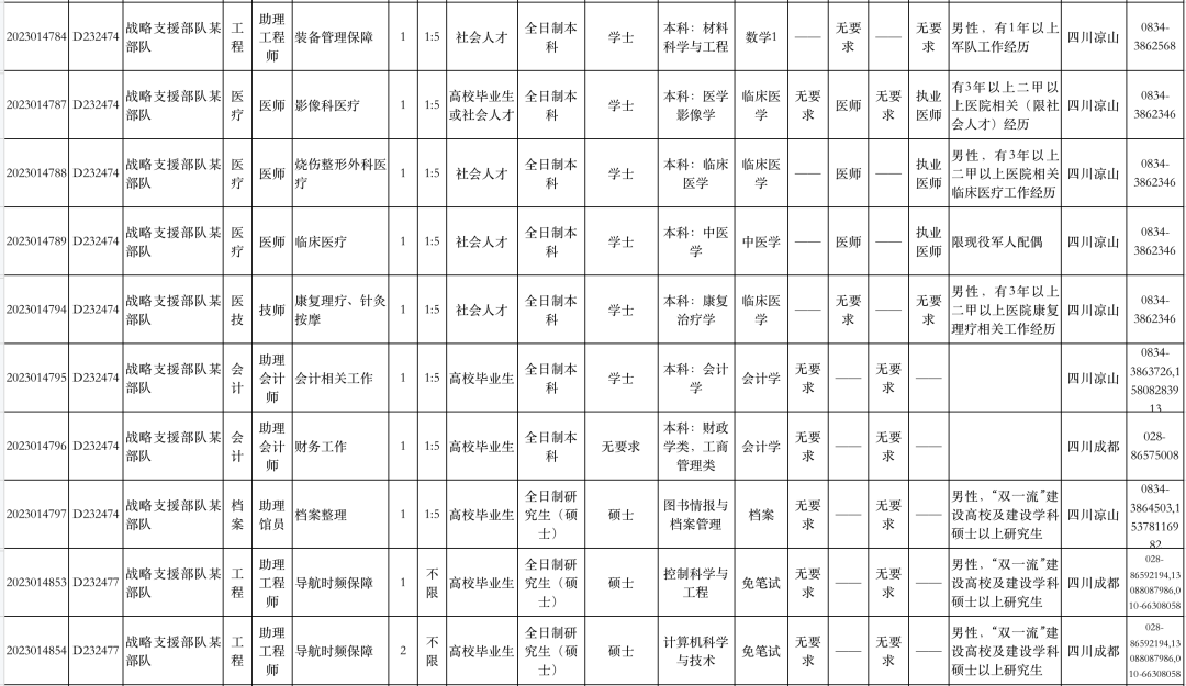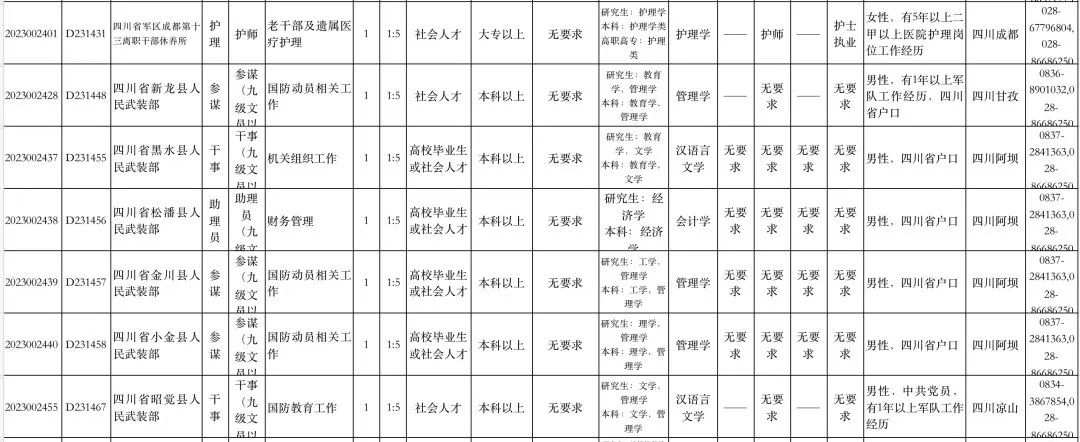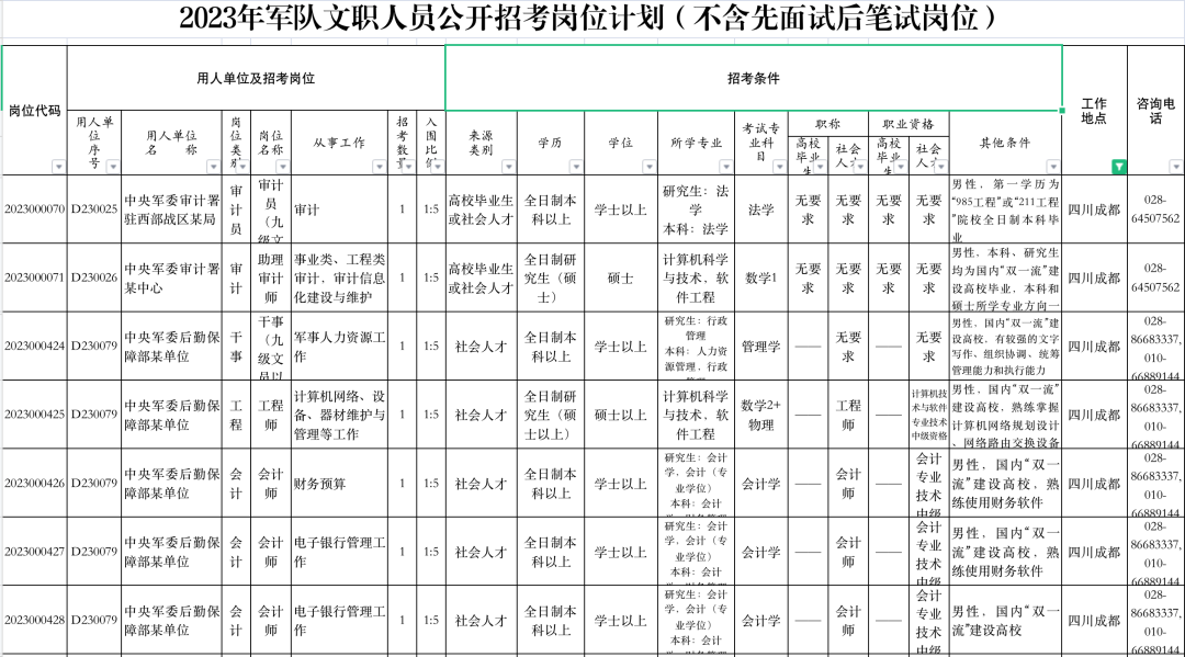 查看2023年军队文职部分岗位计划