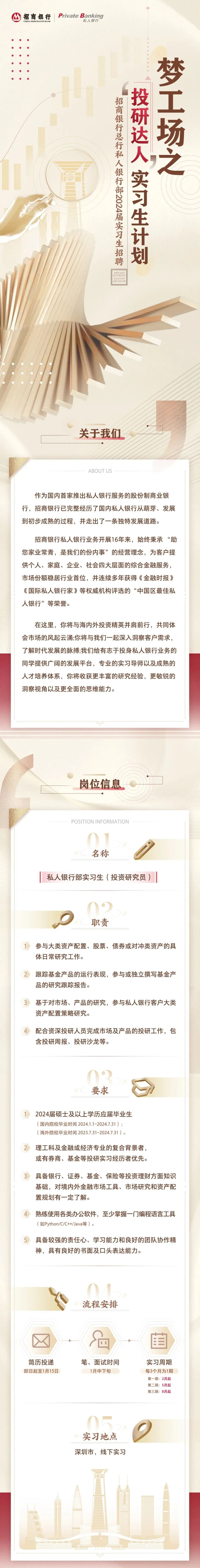 【银行招聘】招商银行“梦工场”之投研达人实习生计划