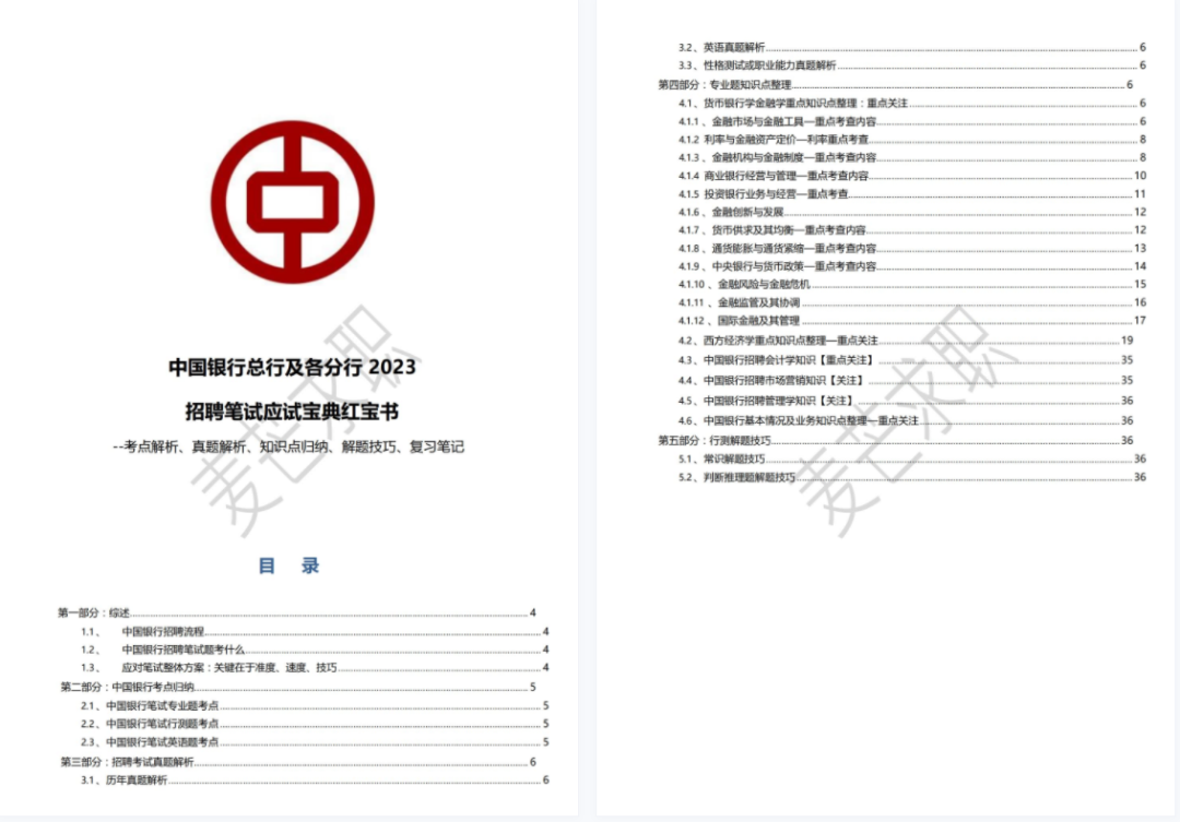 为了帮助各位小伙伴顺利拿到offer,小编为大家准备了71页【中国银行招聘最新笔试应试宝典红宝书(完整版) - 真题解析、考点知识点归纳、模拟题练习(必看)】,公众号后台回复【中行】直接领取~