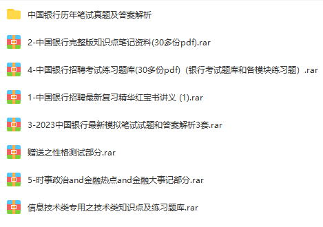 各模块知识点和题库资料 银行通用资料 关注下方公众号 回复:中行 按提示操作 加群免费领取