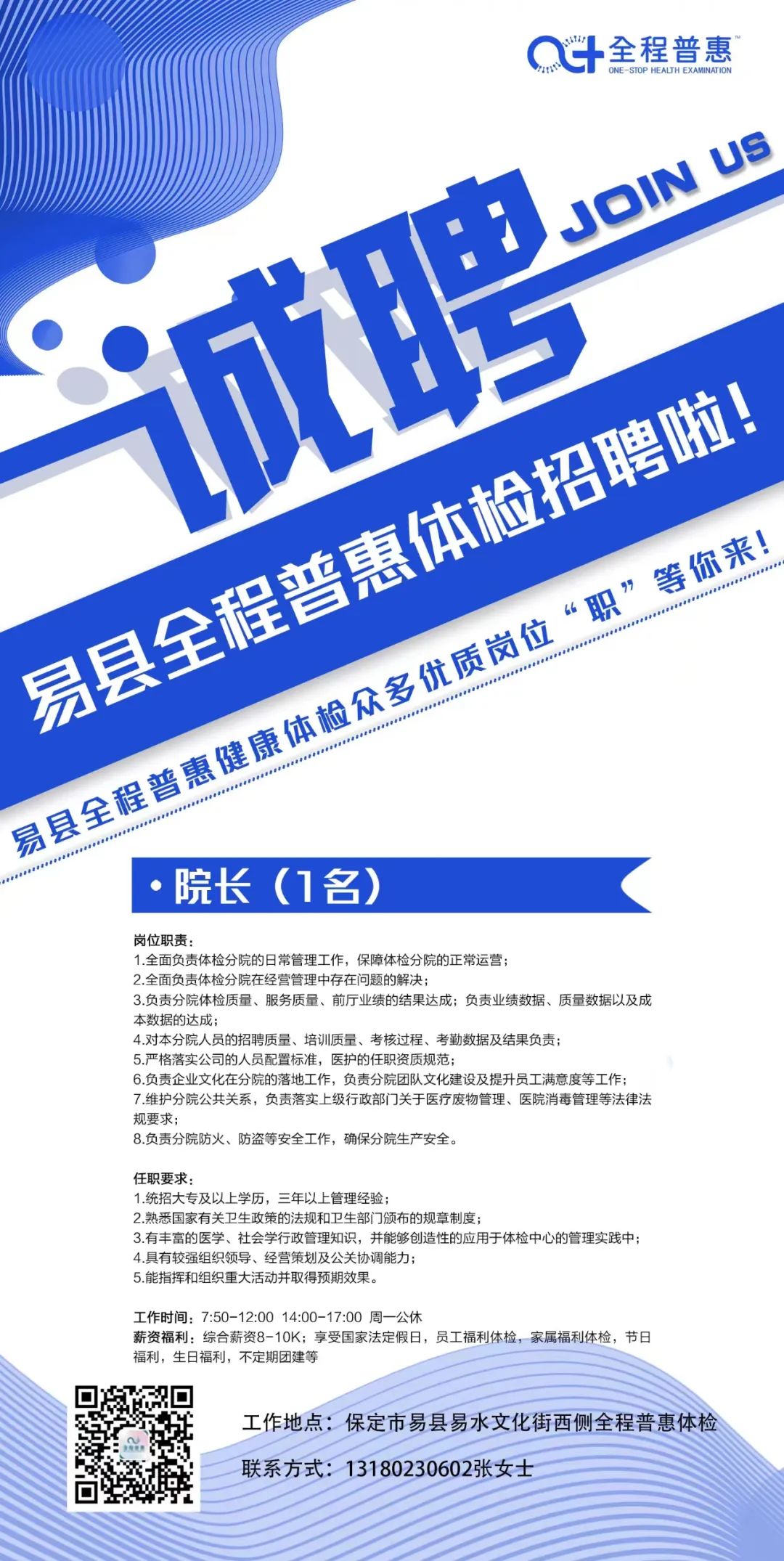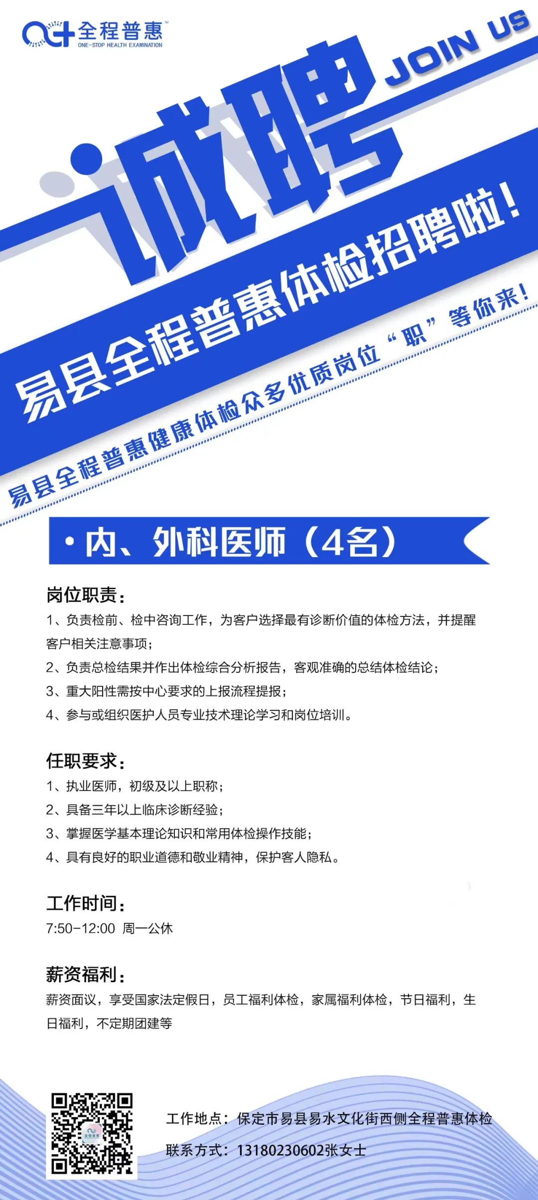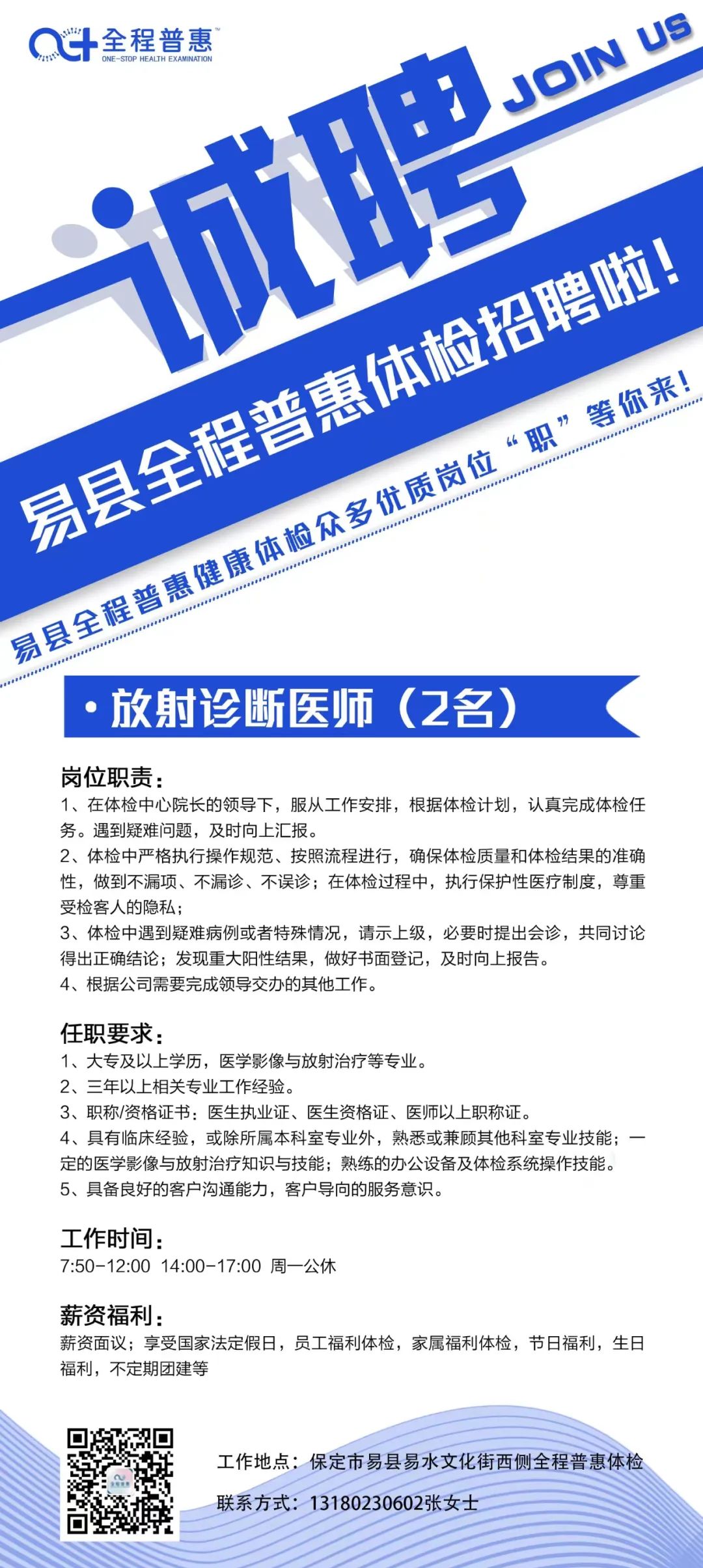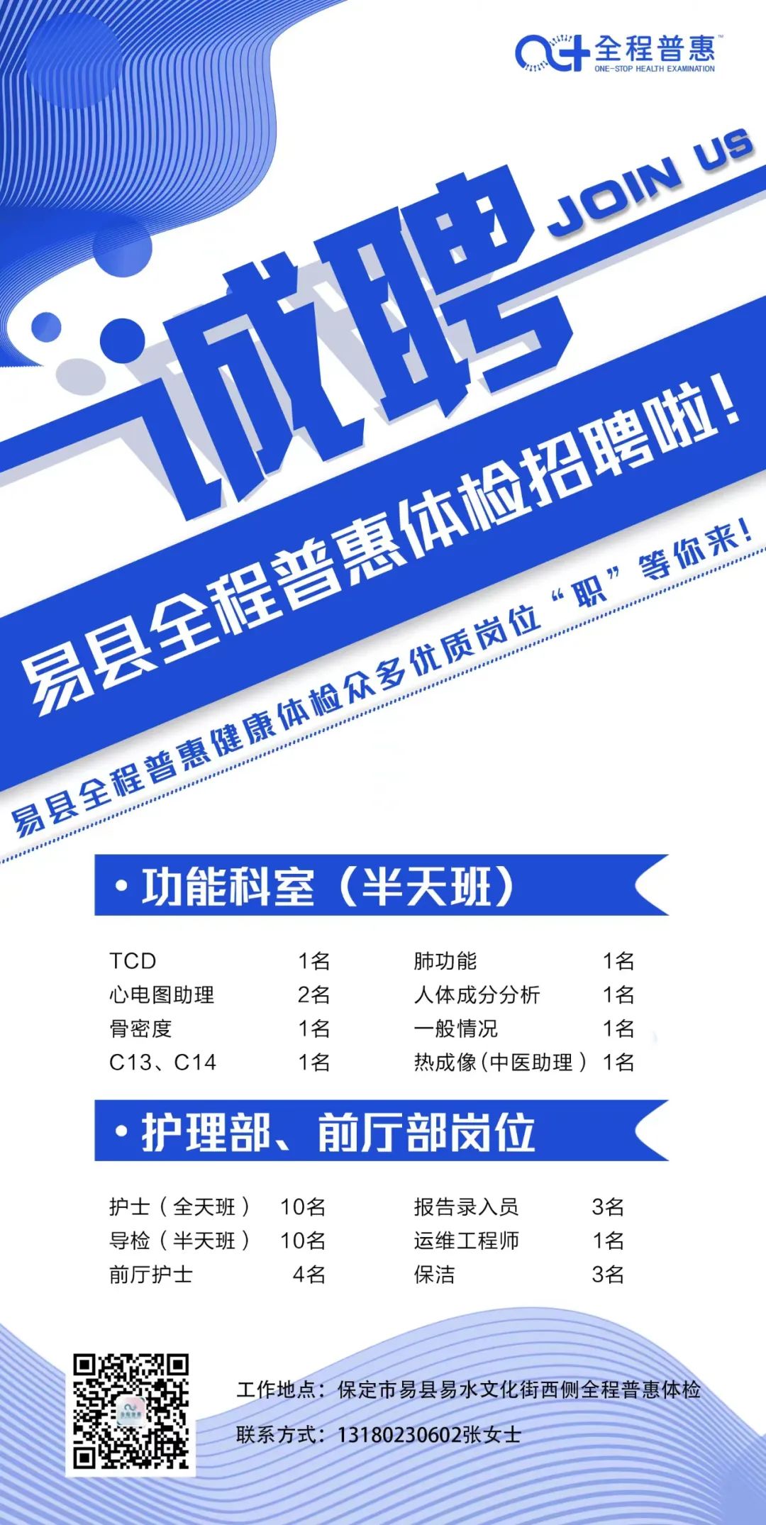 预防新冠肺炎的“防疫一号方代茶饮”、“防疫二号方煎剂”来了 地址:高碑店市光华南大街普惠体检(公元大道小区对面) 高碑店普惠健康体检中心(以下简称:普惠体检) 成立于2016年,是保北地区专业体检及健康管理服务机构,现设有全程普惠体检中心、普惠体检中心2家体检中心,拥有全职专家、专业医护及管理团队近200人。本中心拥有胶囊胃镜室、骨密度、人体热成像检测等专业科室,体检项目达200多项。2018年正式纳入医保定点单位,成为高碑店市健康体检医保定点单位。中心推行医检分离、一站式体检、男女分检、全程导检特色服务。以专业化、高品质的健康体检为基础,以体检大数据为入口,围绕专业预防、健康保障、医疗管家式服务等领域展开服务,为企业和个人客户提供一流的健康管理服务。2020年,全程普惠体检中心正式投入使用,是现代、人文、智能于一体的健康体检管理中心,面积6000余平米,拥有温馨、优雅、舒适的体检环境,配备东软超导1.5T核磁、128层螺旋CT,迈瑞全自动生化免疫流水线、DC—80彩超等多台高端医疗设备,实现兰舍新风系统全覆盖。提供预约体检、1对1导诊、换装体检、中医调理等高端特色体检服务。2022年正式纳入医保定点单位,成为高碑店市健康体检医保定点单位。全程普惠健康管理中心拥有专业的医疗技术和头等舱VIP服务,以中医药学为强大坚实理论基础,通过先进的理疗方式针对四高症状高血压、高血脂、高血糖、高尿酸人群进行调理,中心拥有专业能力的中医医师、健康管理师、优秀护士团队,提供多点对一服务,为现代亚健康人群提供个性化调理方案、慢病管理与干预。2021年4月,全新打造的全程普惠智慧化预防接种中心及普惠眼视光中心正式投入使用。全程普惠智慧化预防接种中心引进新型智能化的免疫接种系统,能够进行自动化分诊、全流程监管,实现预防接种全流程智慧化管理。普惠眼视光中心,依托于普惠体检中心先进的技术和理念,专注于近视医疗视光领域,汇聚了国内近视医疗专家,为青少年低视力和视功能障碍患者提供筛查与防控的服务,为不同年龄、不同需求的近视人群提供全方位、个性化近视解决方案,满足不同近视患者对提高视觉质量的需求,让近视人群获得舒适清晰的视界!普惠体检打造全生命周期健康管理的服务模式,根据体检者的职业、生活习惯等诸多条件进行疾病高危因素评估,制定个性化体检方案,具有大数据指导下的标准化具体操作规程,建立了健康体检、防癌筛查、肿瘤筛查、诊断与治疗一体化、全程规范化健康管理体系。 体检中心与北京、保定等知名三甲医院专家强强联合,专家定期出诊,线上远程会诊!倾力打造我市技术领先,精准高效、服务优良的健康体检品牌! |
