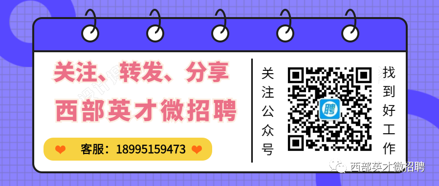 找工作关注下方公众号每天发布最新招聘信息,欢迎转发给身边找工作的朋友,招聘、求职服务热线:18995159473