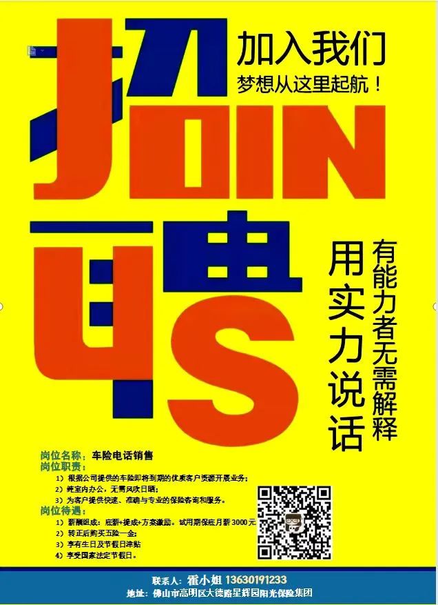 点击蓝字 关注我们 高明本地万人+便民服务平台!免费发布招聘、求职、拼车、房产租售等便民信息。 发布广告,商业推广,同城拼车加群,招聘求职加群,闲置交易,寒假工加群,本地聊天交友,抖音爱好者加群,请联系小编13415529767微信同号。 招聘、求职 招聘启示