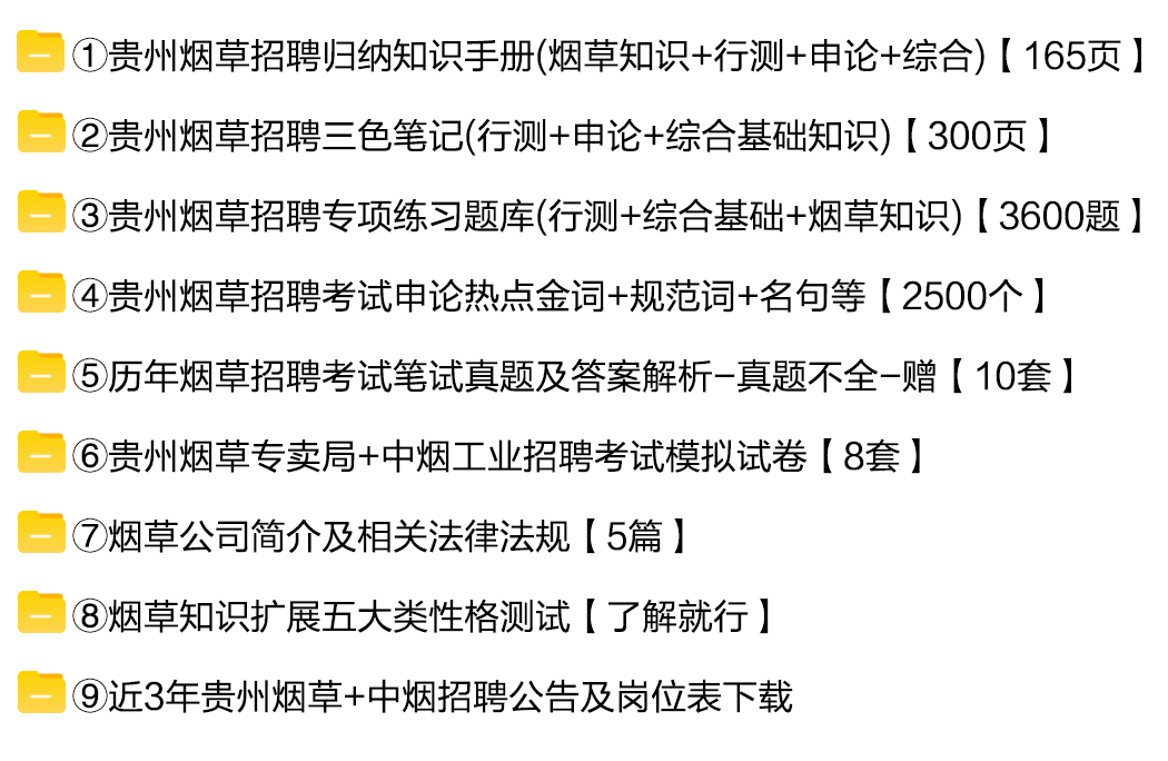 👇点击下方卡片关注公众号后台回复关键词【烟草资料】✍下载贵州烟草备考1800题+18套卷