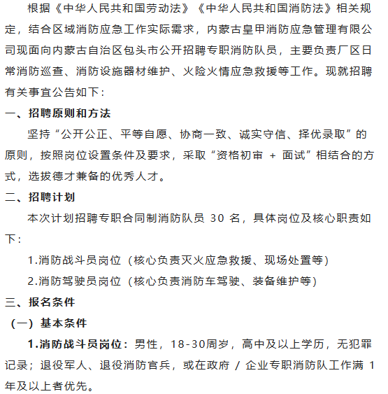全国招聘信息大全汇总内蒙古皇甲消防应急管理有限公司
