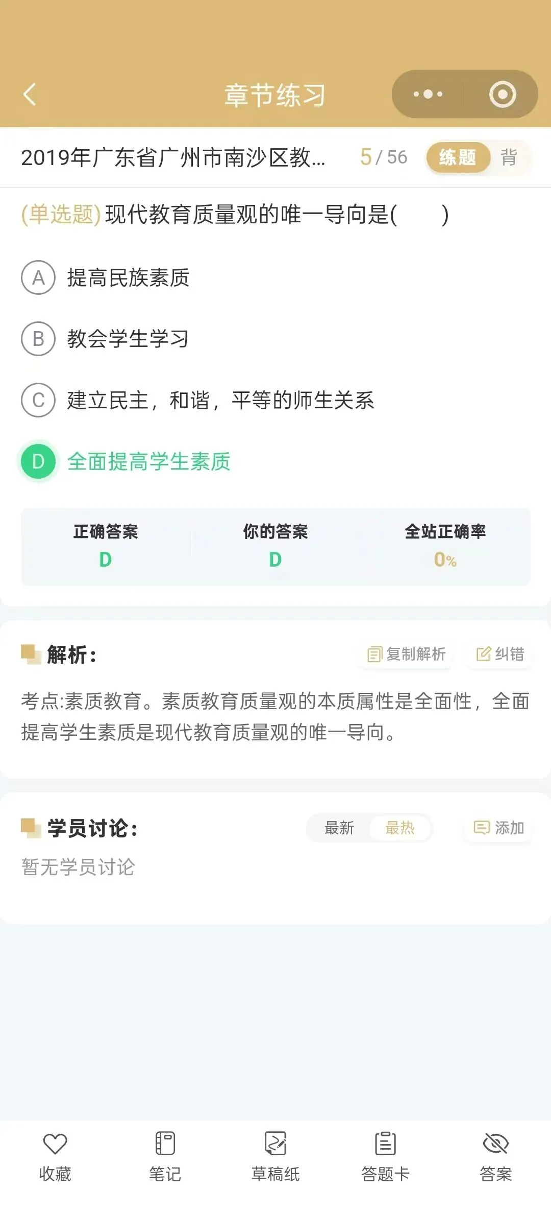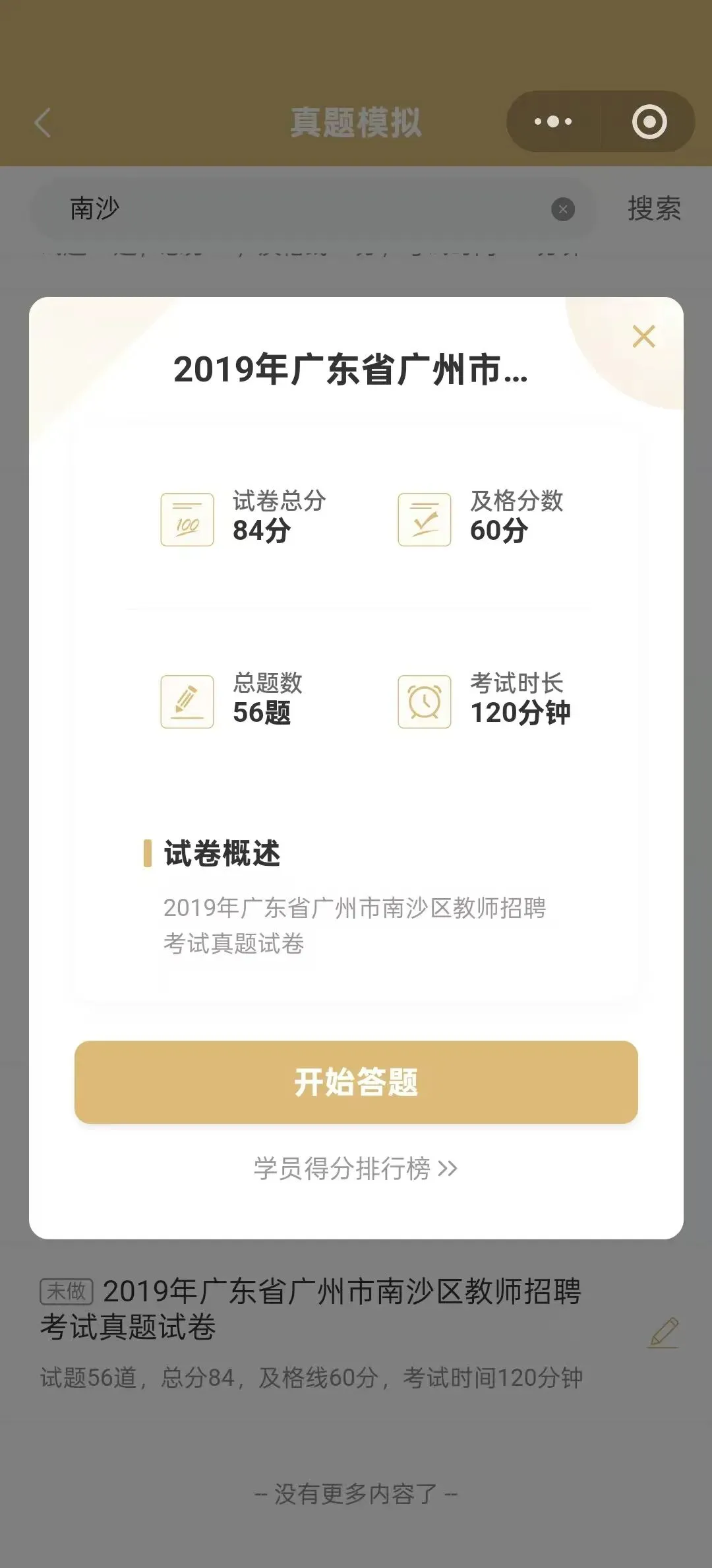 今天为大家介绍的是2019年广东省广州市南沙区教师招聘考试真题试卷,总共56题,其中单选题30道,多选题10道,判断题10道,简答题2道,论述题2道,材料分析题1道;有需要备考南沙教师招聘的小伙伴们抓紧时间刷题吧!